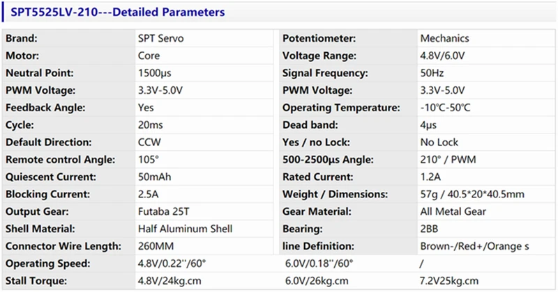 Продукт: SPT5425LV 25 кг 90 ° цифровой сервопривод