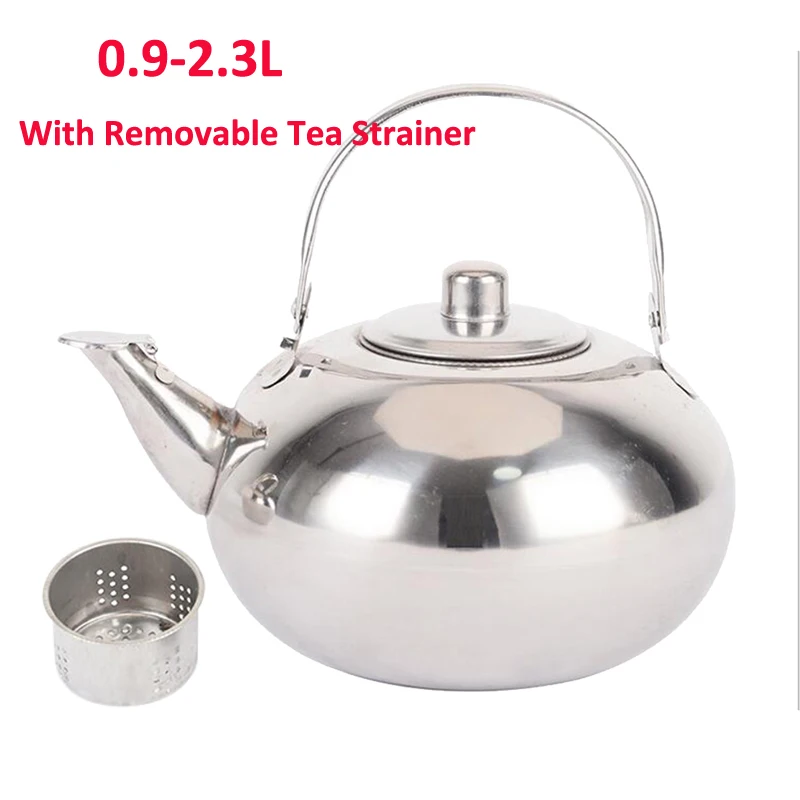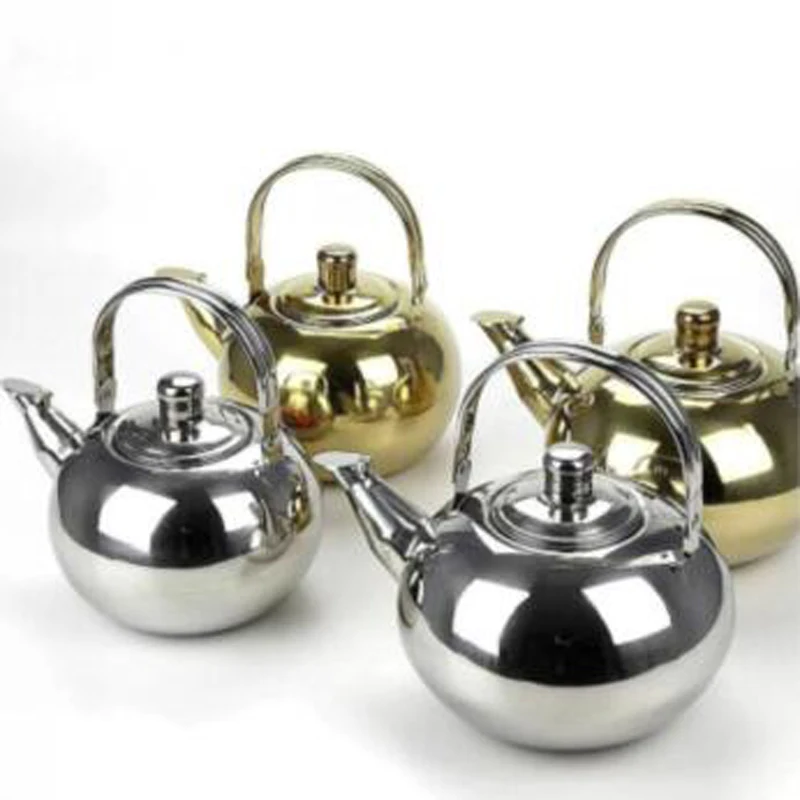 Особенности: 1. Носик снабжен колпачком для предотвращения попадания пыли и других примесей в чайник и загрязнения, а также предотвращения протекания воды. 2. Конструкция антиобжигающей ручки имеет хорошую функцию теплоизоляции и анти-обжигания. 3. Оснащен фильтром для эффективного фильтрации остатков чая. Описание: Материал: нержавеющая сталь Размер: как показано Емкость: 0.9л, 1.3л, 1.8л, 23.л Упаковочный лист: 1 шт.