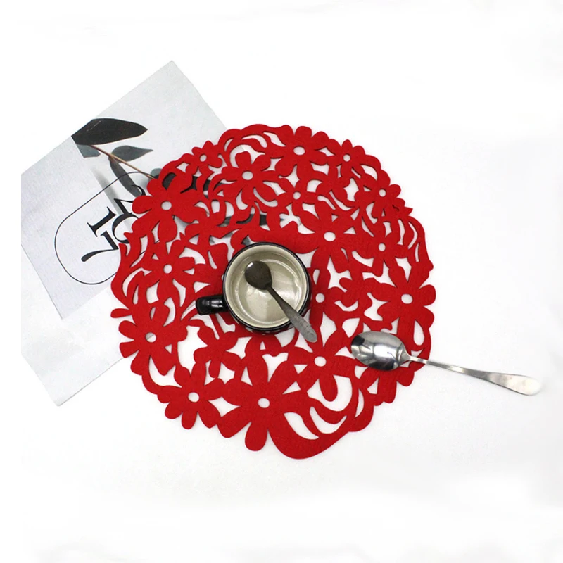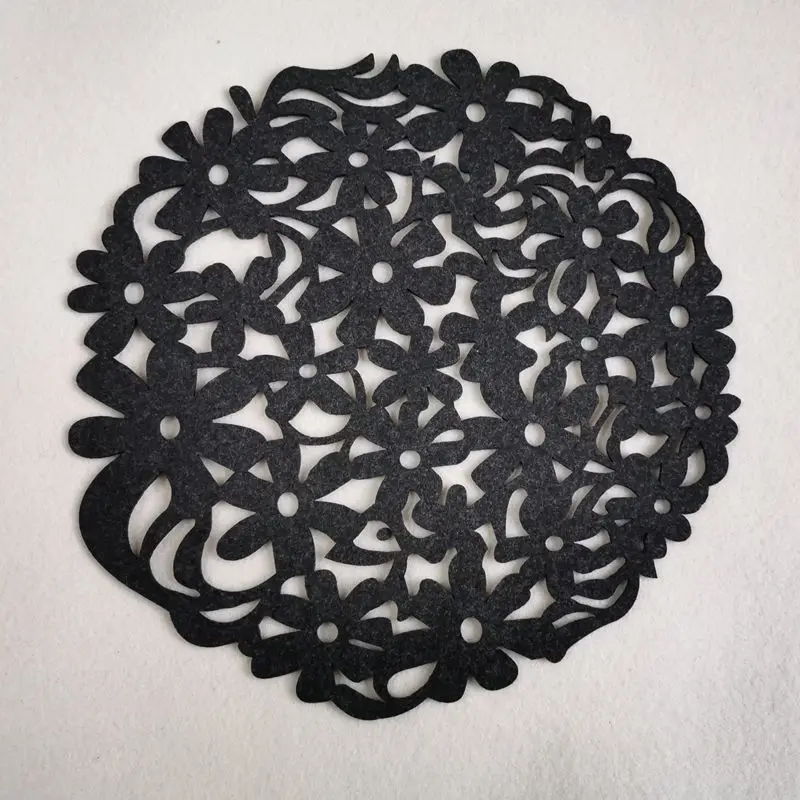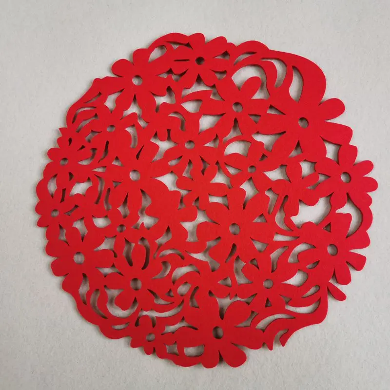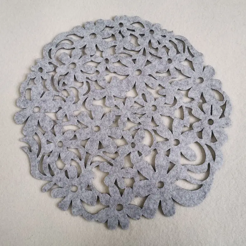 Артикул: полый Подставка для столовых приборов Диаметр: около 30 см (torlerence +/-1 см) Толщина: 3 мм Материал: войлок Цвет: красный, светильник-серый, темно-серый, коричневый Принимаем на заказ, минимальный заказ 50 шт. Особенности: 1) Полный контур, гладкие линии 2) строгое мастерство, деликатная резка 3) 3 мм Толщина прочного использования