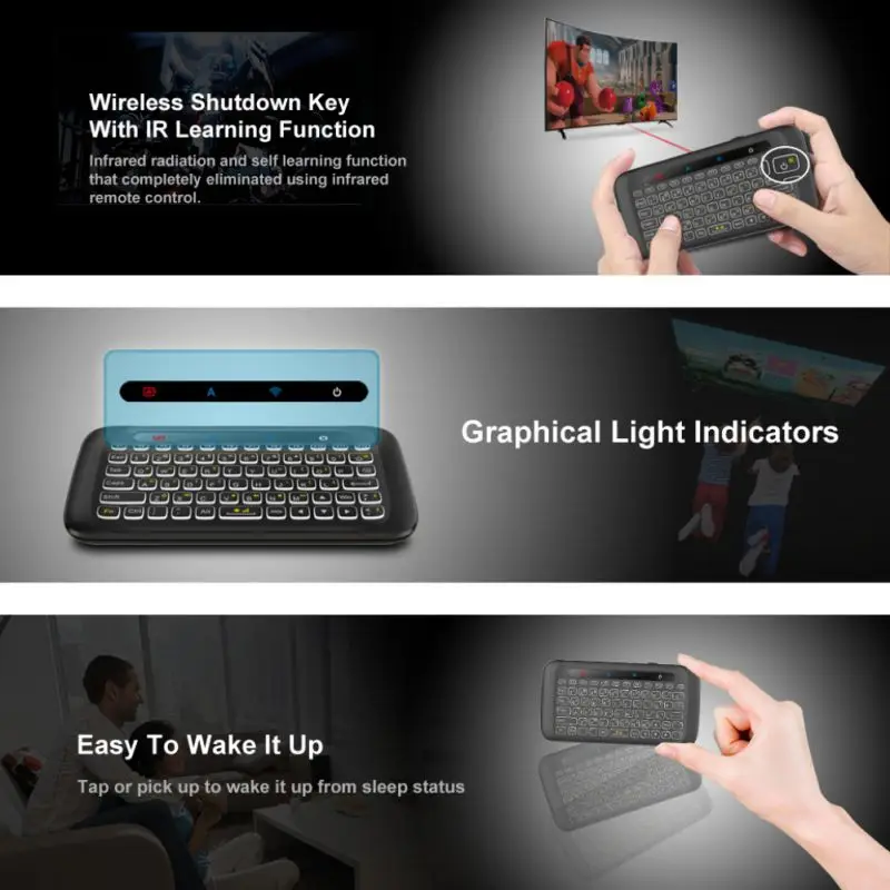 Мини беспроводная клавиатура с подсветкой, ИК-пульт дистанционного управления/обучающая воздушная мышь, совместимая с Google/для Android tv Box
