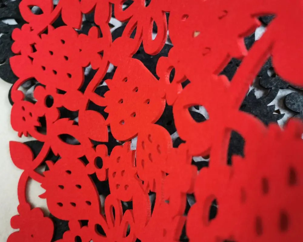 Изделие: пустотелые салфетки Диаметр: 29х45см (torlerence +/-1 см) Толщина: 3 мм Материал: войлок Цвет: красный, светильник-серый, темно-серый, коричневый Принимаем на заказ, минимальный заказ 50 шт. Особенности: 1) Полный контур, гладкие линии 2) строгое мастерство, деликатная резка 3) 3 мм Толщина прочного использования