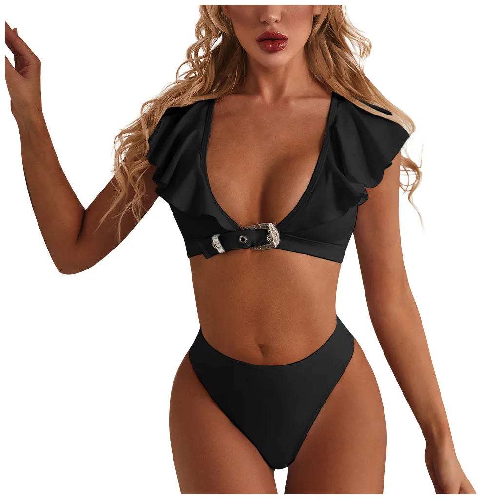 Женский сексуальный бюстгальтер с v-образным вырезом и пуш-ап, пляжный комплект бикини, купальник