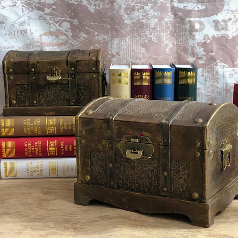 Ретро деревянный пират, сундук с сокровищами драгоценный камень коробка для хранения ювелирных изделий безделушка Keepsake комнаты сокровищ украшения дома Органайзер