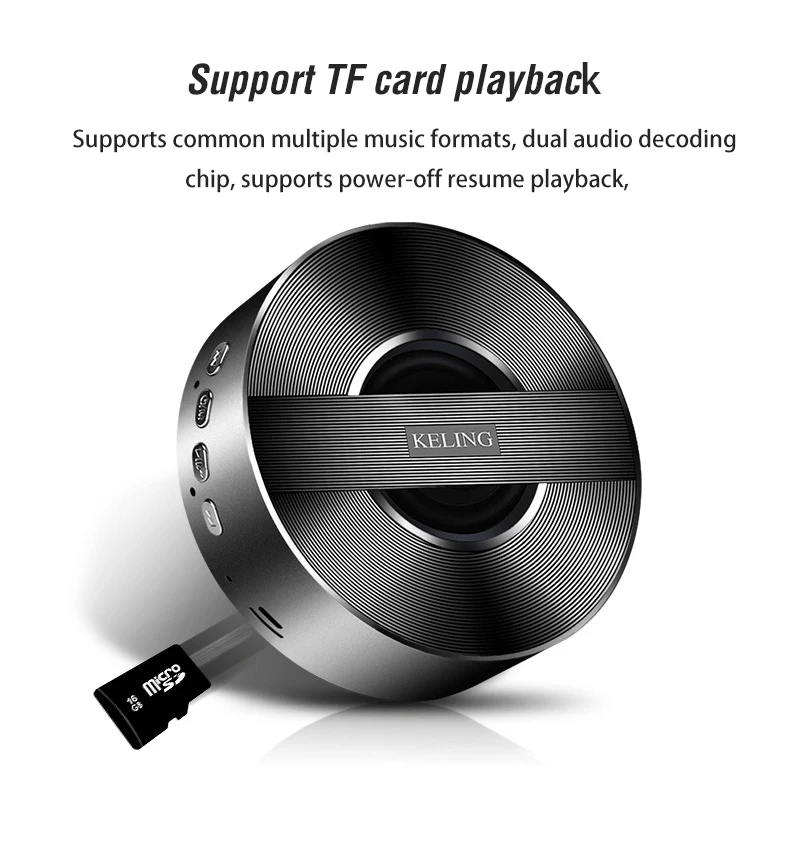 Выход/RMS: 3 Вт Импеданс: 4Ohm SNR ≥ 95 дБ (линейный выход) Внешний USB 5V 600mA питания Частотная характеристика: 80 Гц-18 кГц Поддержка: MP3, WMA,WAV, APE,FLAC формат музыки Динамик: Φ405мм 4Ω; 3 Вт Батарея: 1000 мАч литиевая батарея Искажение: 0.5%-1.0% AUX: 3,5 мм Цвета: золотой, серебряный, розовый, черный