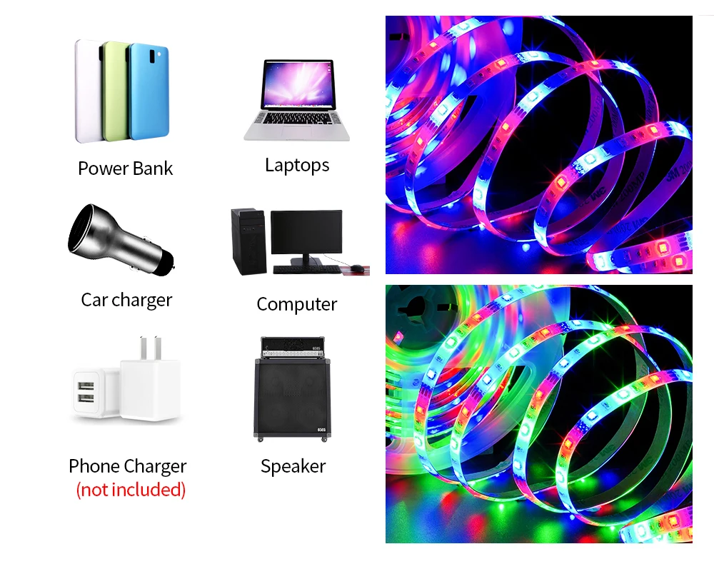 Для rgb-ленты он имеет только чистый красный цвет. Зеленый, синий светильник. Когда вы выберете другой цвет на пульте дистанционного управления, он покажет смешанный цвет красного, зеленого и синего.