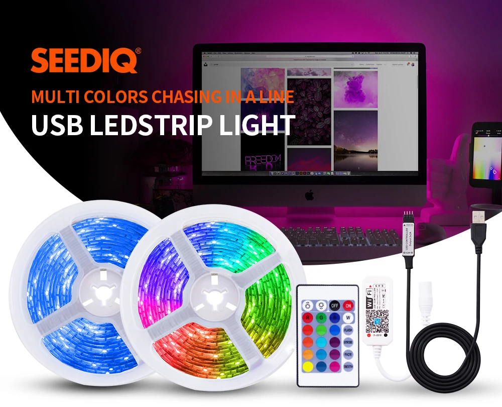 5 в Светодиодная лента RGB USB 2835 SMD 60 светодиодов/м Светодиодная лента для компьютера ТВ Светодиодная лента с дистанционным управлением 24K 3K умная Wifi Светодиодная лента бесплатная доставка