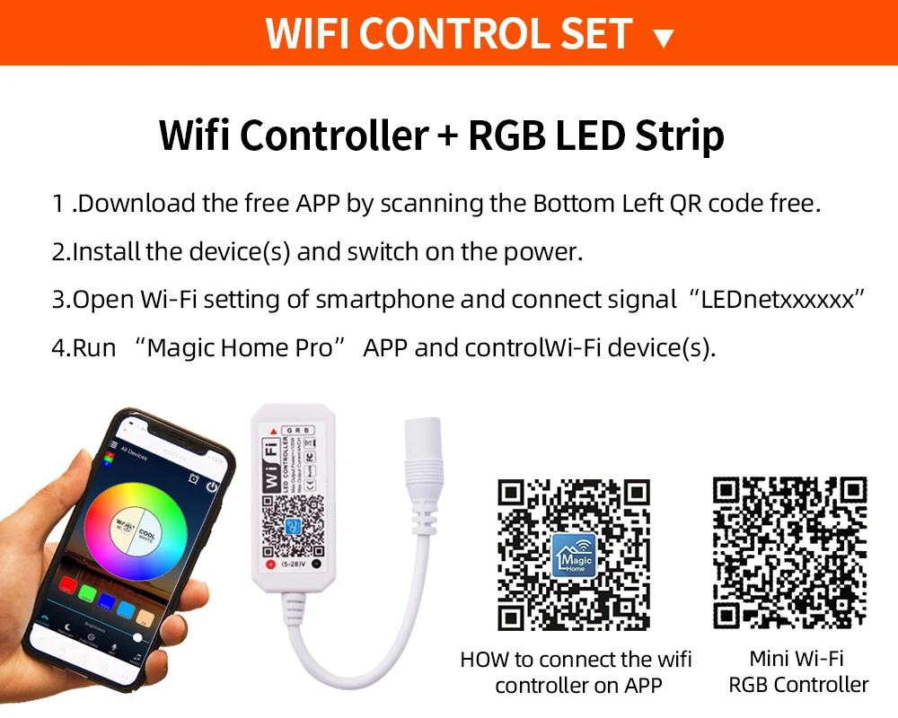 Вариант 3: 1 рулон * 0,5 м/1 м/2 м/3 м/4 м/5 м RGB Светодиодная лента + WIFI Contrllor
