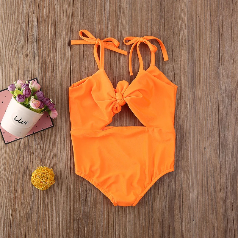 Новинка; Модный детский однотонный купальный костюм с оборками для девочек!