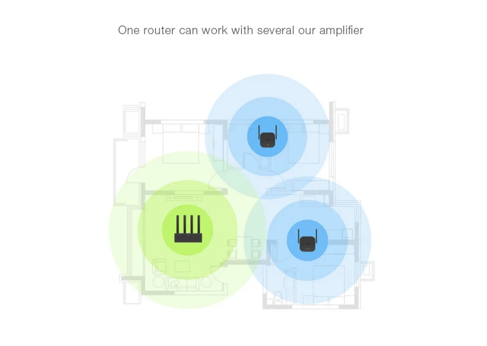 Необходимо подключить роутер на близком расстоянии, чтобы усилитель мог получить стабильный сигнал, по крайней мере, два квадрата или более.