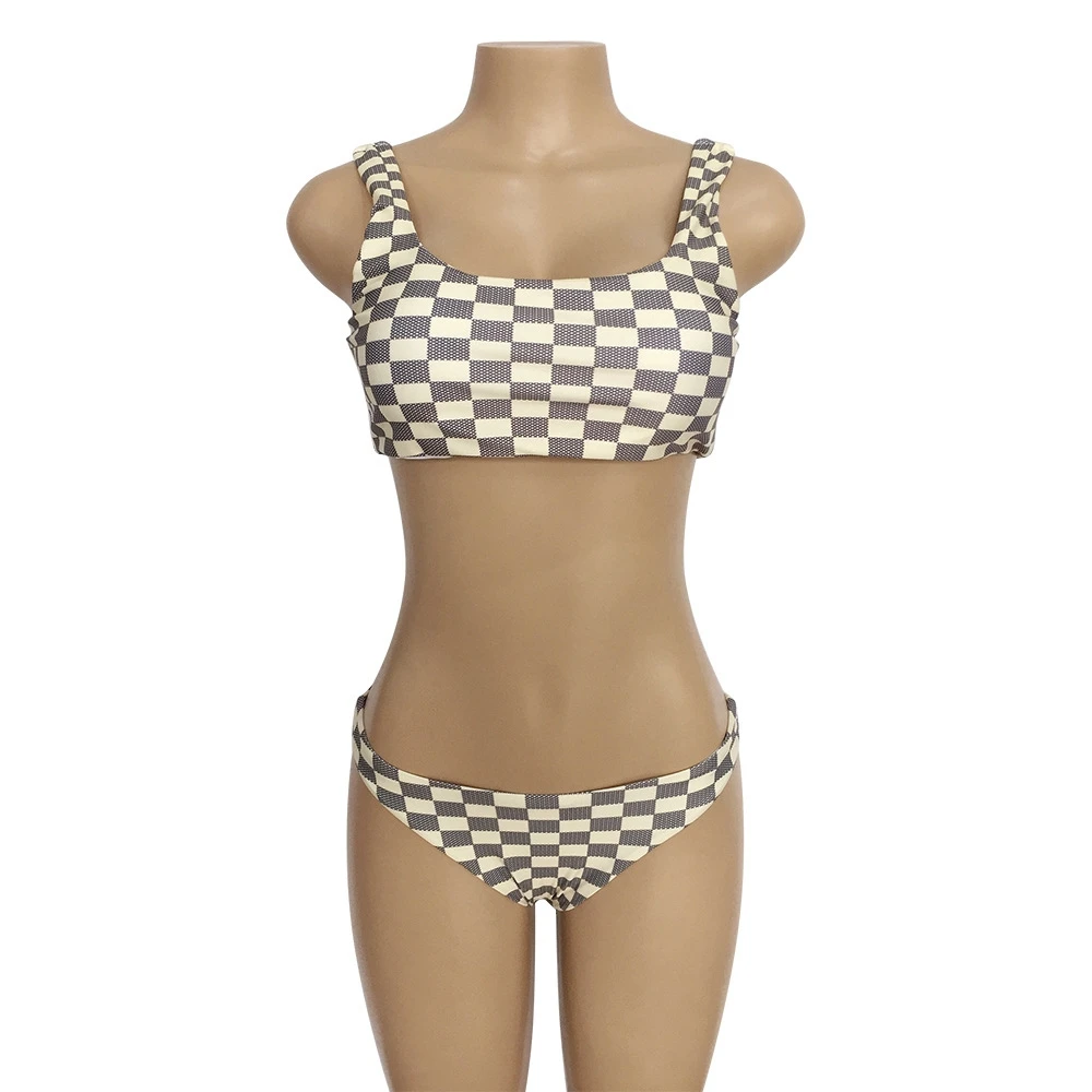 Клетчатый сексуальный женский комплект бикини 2020 Новый бюстгальтер с вкладышами пуш ап укороченный топ с низкой талией купальный костюм женский купальник купальный костюм Пляжная одежда