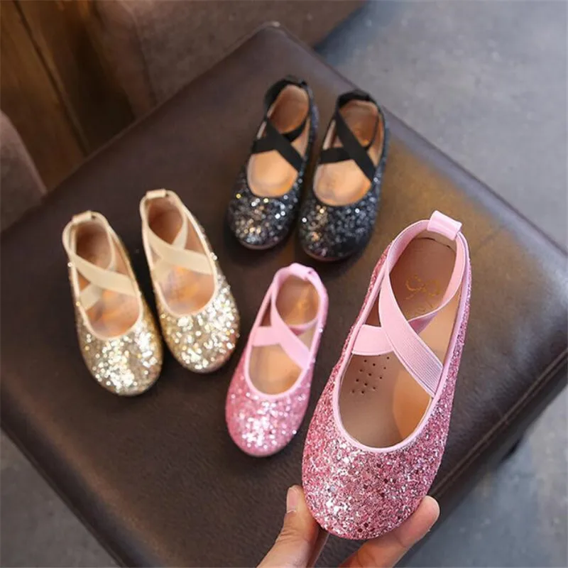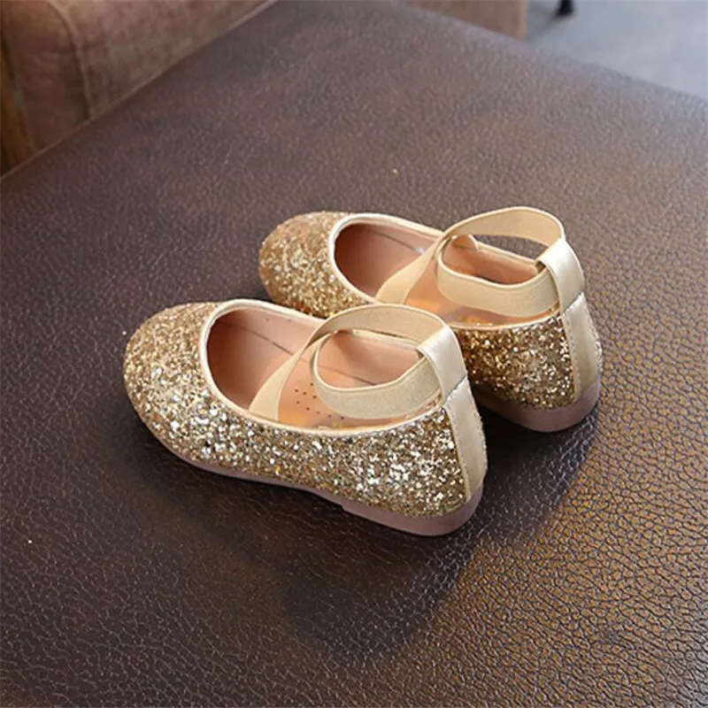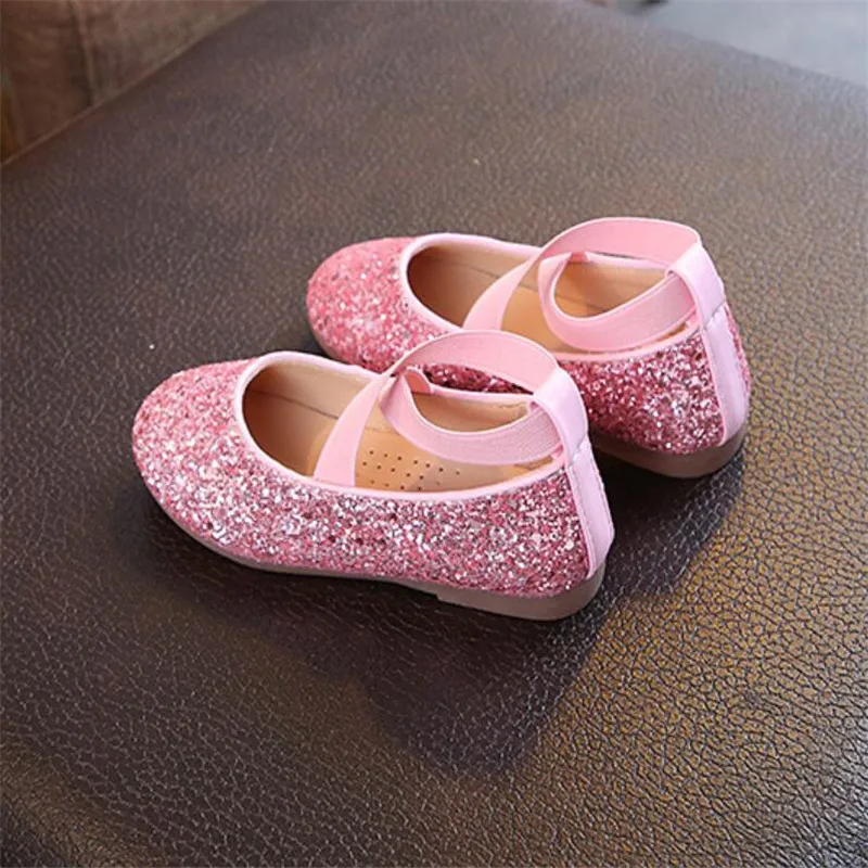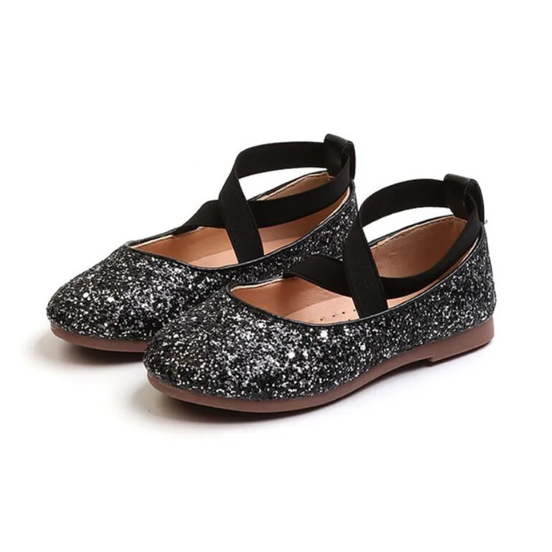 Новинка 2020 года; Блестящие кожаные туфли принцессы для девочек; Мягкая удобная блестящая детская обувь с блестками; Милые свадебные вечерние туфли на плоской подошве; 26-35