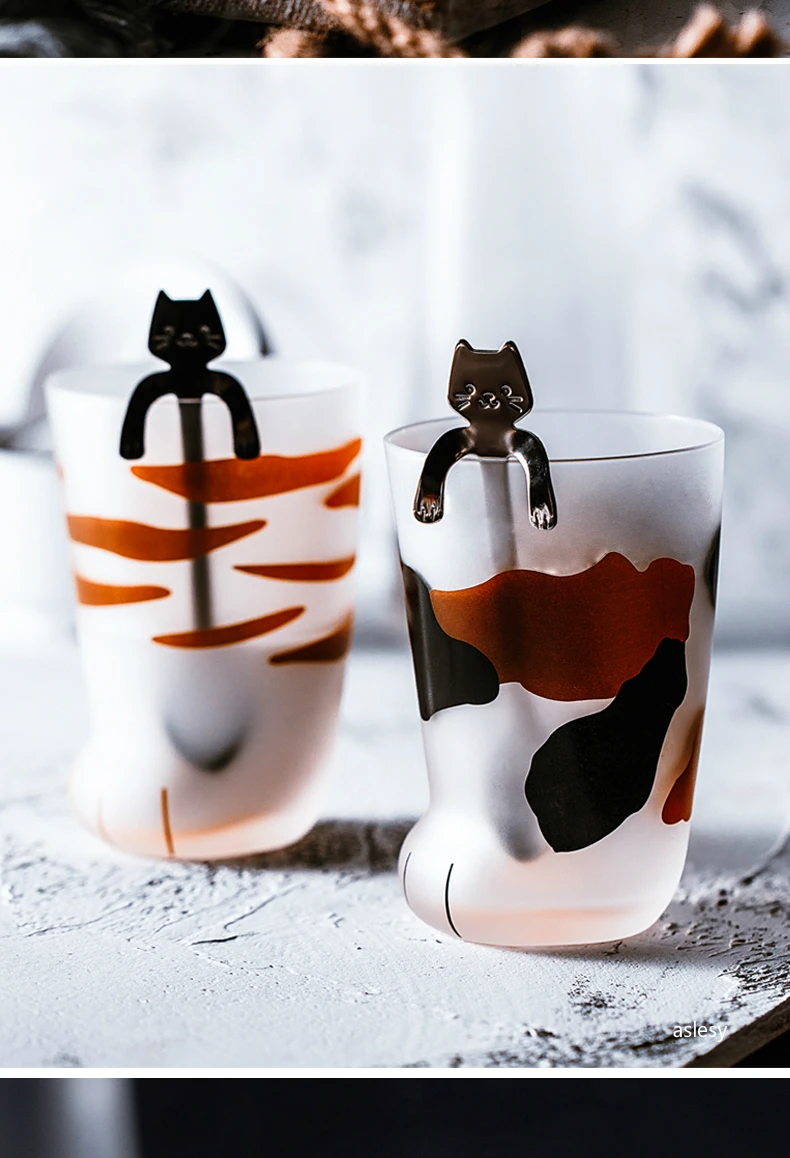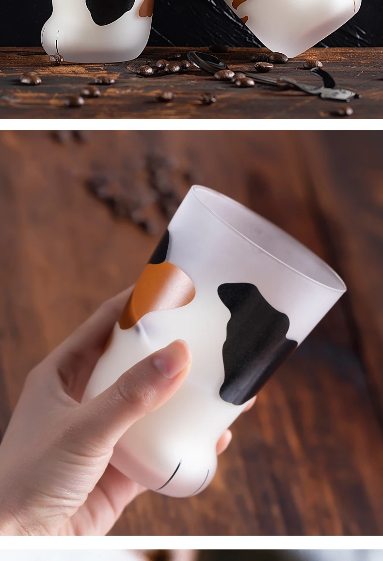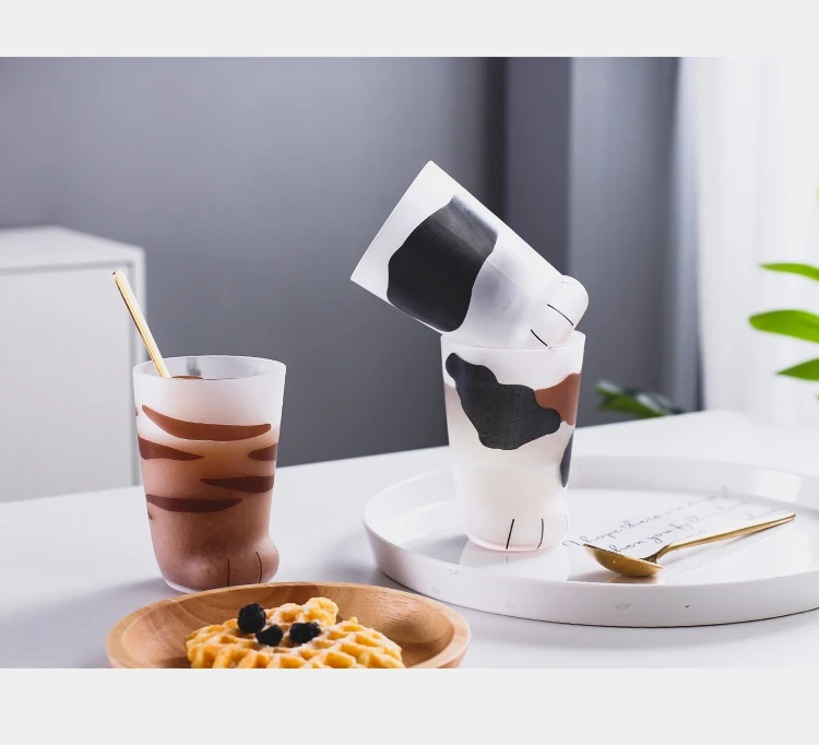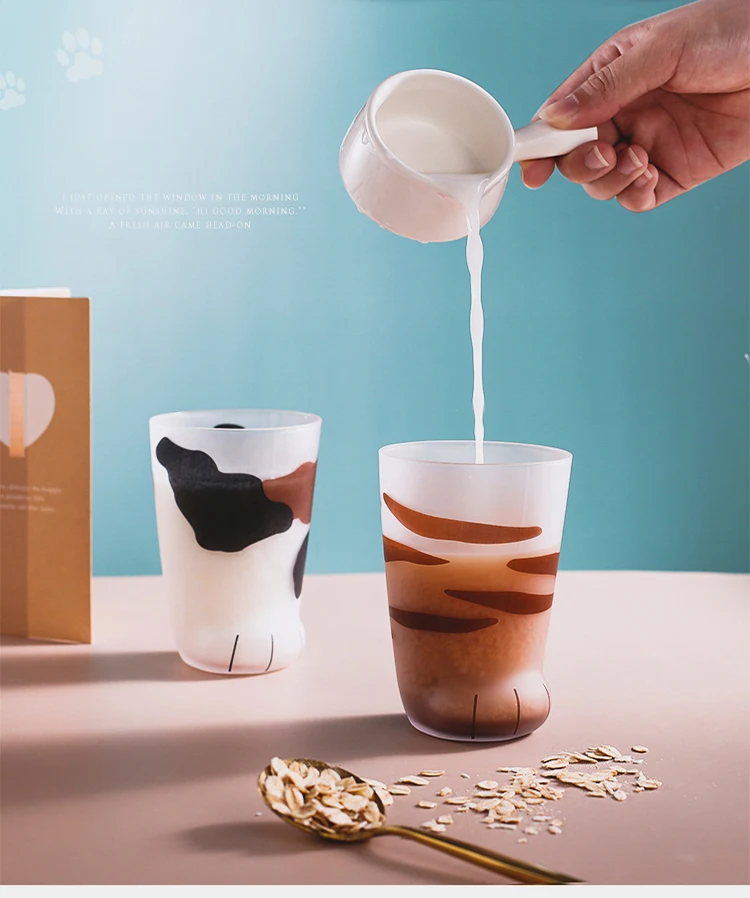 Матовое стекло, милая чашка с кошачьими лапами, кофейная кружка с тигром, стакан, посуда для напитков, завтрак, молочный чай, сок, креативные чашки, подарок для девочек