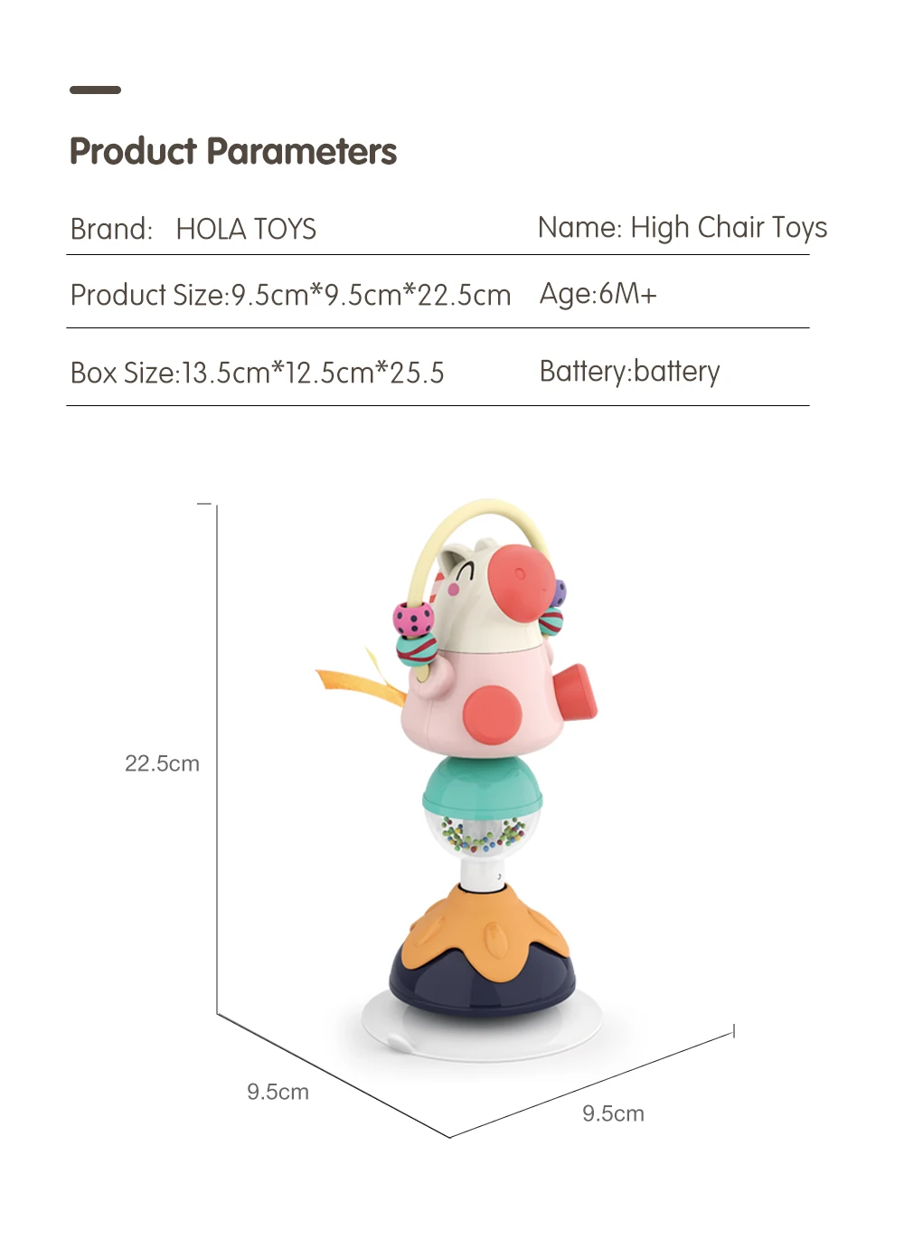 HOLA 3150A детская погремушка Spinwheel с всасывающим основанием высокий стул интерактивная игрушка для малышей 0-12 месяцев раннего развития