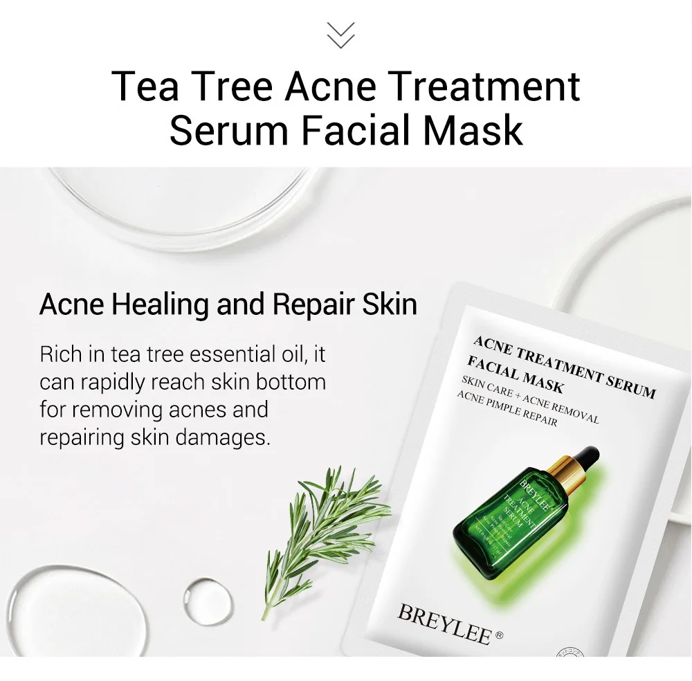 Маска для лица с сывороткой для лечения акне чайного дерева Лечение акне и восстановление кожи Богатое эфирным маслом чайного дерева, оно может быстро достичь дна кожи для удаления акне и восстановления повреждений кожи.