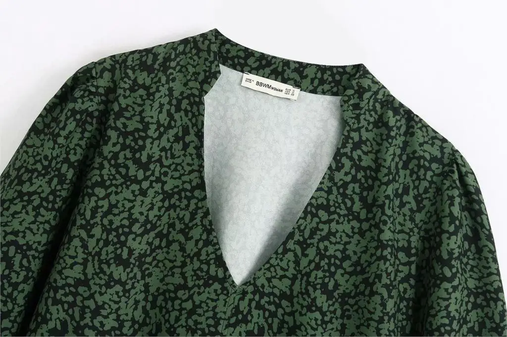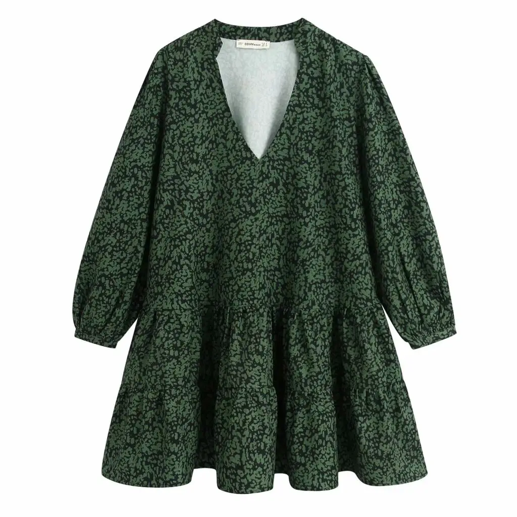 Новинка, женское весеннее платье с длинным рукавом и v-образным вырезом, зеленое платье zoravicky, Vestidos, высокая талия, оборки, Ретро стиль, вечерние платья, za, винтажное платье