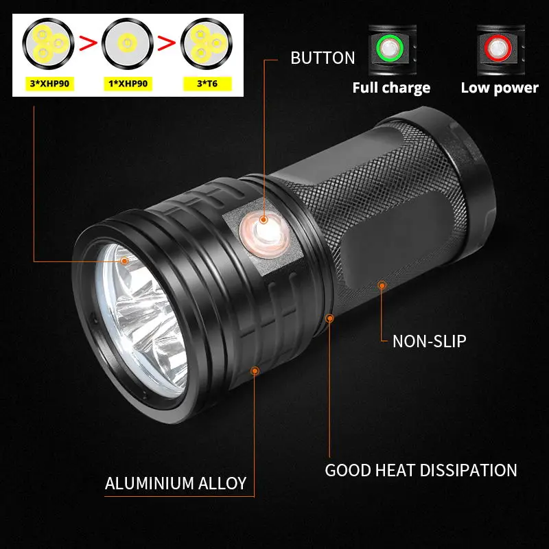 Мощный 3 * XHP90 T6 светодиодный фонарик SERCHLIGHT кемпинга LANTERNAS
