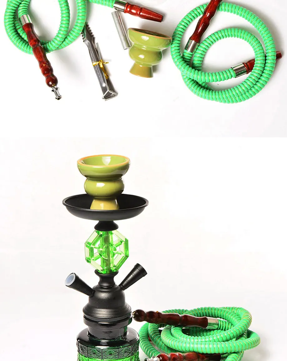 Портативный маленький кальян Материал: стекло + металл + керамика Цвет: черный, синий, красный, зеленый Общая высота: около 28 см Ширина: около 11 см Применение: фитинги для водопроводных труб Применимые места: семья, бар, клуб, свадьба, вечерние, путешествия, на открытом воздухе и т. Д. Упаковочный лист: 1 * основа для кальяна (включая необходимые аксессуары, показанные на фото) 1 * керамическая чаша 2 шт. * шланг из синтетической кожи 1 шт. * Металлический уголь пинцет