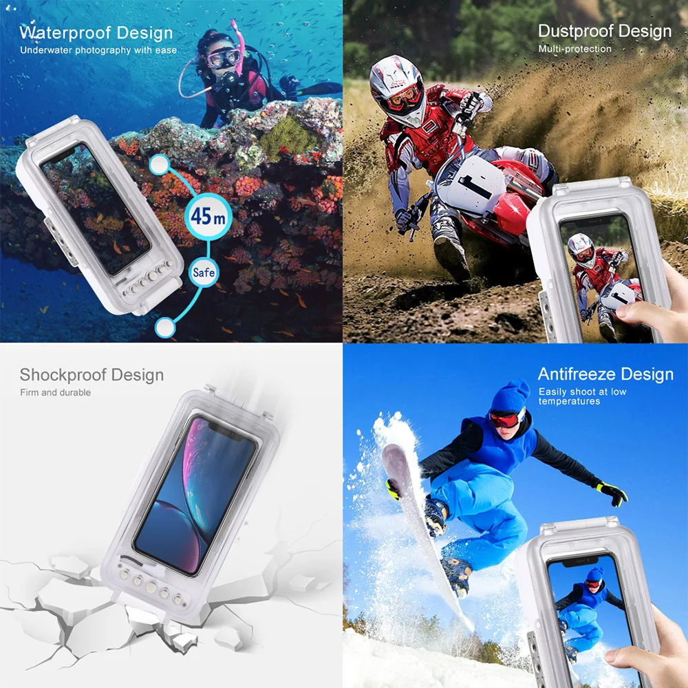 Водонепроницаемый корпус для смартфона Cadiso 45m/147ft, подводный чехол для дайвинга для iPhone 11/X/8 Plus/8/7 Plus/7 iOS 13 или более поздней версии iPhone