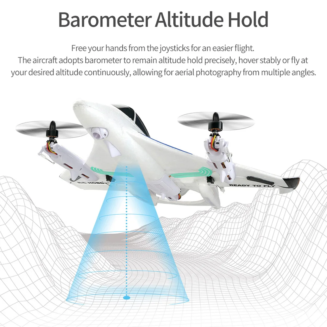 Особенности: . Самолет был изготовлен из ударопрочных инженерных материалов EPO и изготовлен из стержней из углеродного волокна, которые очень устойчивы к ударам . Высокая емкость и большой мультипликатор 11,1 В литий-полимерный аккумулятор поддерживает более 13 минут полета. . Три 1370 бесщеточных мотора были использованы. С высокоэффективными лезвиями, 2 шт высокой точности и большой вращающий момент 5g цифровой двигатель рулевого управления для вытягивания переднего двигателя. Высокая эффективность 4,3g цифровой двигатель рулевого управления для управления поверхности руля самолета . Летательный аппарат оснащен 6-осевым гироскопом и постоянное давление и 3D-6G режим преобразования, который подходит для полетов в различных сцен и больше подходит для начинающих практиковать летные. . Самолет может взлететь и приземлиться вертикально. С преобразованием воздушного режима, режимом начинающих и аэробным режимом, который может эффективно решить проблему небольшого места полета, не в состоянии такси и снимать, не в состоянии снять плавно и новички могут решить проблему не овладевая предметами взлета и доставки . Несколько режимов полета: 1. Мультироторный Контроллер полета (4 оси) самолет может летать в вертикальном положении и hover как квадроциклов и вертолеты, так же, как вперед, назад, из стороны в сторону и отжима, И имеет функцию взлета/посадки одной кнопкой. 2. Vereticl полет: самолет переключился от горизонтального режима полета к вертикальному полету. Он может летать вертикально, парить, вперед и назад, скользить влево и вправо, и вращаться, как X520 и Квадрокоптер и вертолет. 3. 6G полет самолета: самолет также может взлететь вертикально, когда он находится на плоской подошве. Он может переключаться из горизонтального режима полета в режим самостабилизации постоянной высоты 6G с одной кнопкой для реализации бесшовной стыковки от вертикального полета до горизонтального полета. Гироскоп самостабилизация, блокировка направления руля, очень подходит для начинающих, чтобы практиковать Летающий режим фиксированного крыла. 4. После того, как самолет изменяет горизонтальный полет в воздухе, переключите положение 3D режима, и самолет входит в режим 3D спецэффектов (режим блокировки 3D). Легко сделать сальто, рулон, спираль и другие трюки Технические характеристики: . Цвет: синий/красный . Материал: EPO + электронные компоненты . Батарея фюзеляжа: LI-POLY 11,1 В (1000 мАч) 20C . Время зарядки: 150 минут . Время полета: 11-12 минут (вертикальный полет)/15-16 минут (горизонтальный полет) . Режим управления: пульт дистанционного управления 2,4g . Расстояние управления: 300 м . Размер изделия: 45x44,5x10,7 см . Вес изделия: 1300 г . Посылка Размеры: 49x48,5x14 см . Посылка Вес: 1450 г . Упаковка: герметичная коробка Посылка Содержание: . 1 самолет (с батареей) . 1 пульт дистанционного управления . 1 x Руководство пользователя . 1 х USB кабель . 1 х CW пропеллер . 1 x пропеллер CCW Упаковочный лист . 1 самолет (с батареей) . 1 пульт дистанционного управления . 1 x Руководство пользователя . 1 х USB кабель . 1 х CW пропеллер . 1 x пропеллер CCW