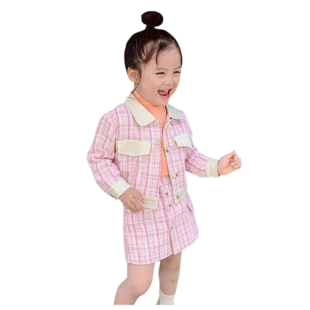 Toddler Kids Baby Girls Thicken Plaid Coat Jacket Skirts Outfits Clothes Set