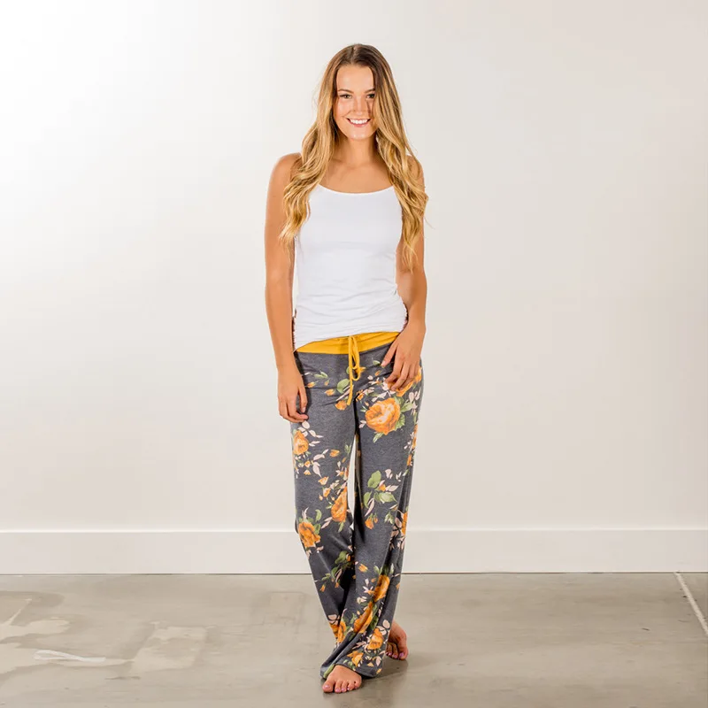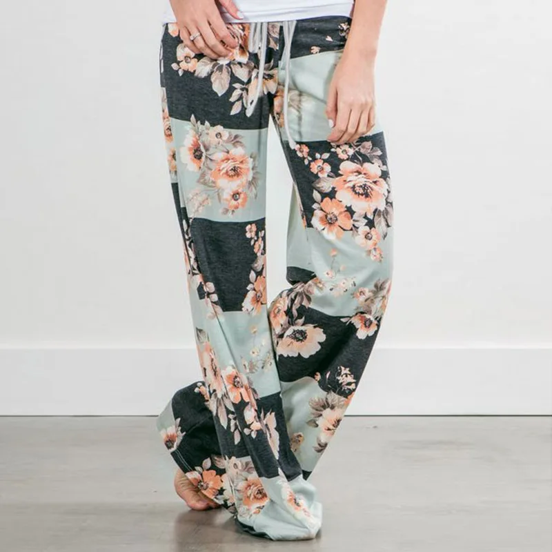 Женские свободные брюки размера плюс с цветочным принтом, повседневные широкие брюки на завязках, женские летние брюки, длинные спортивные штаны, брюки Харадзюку