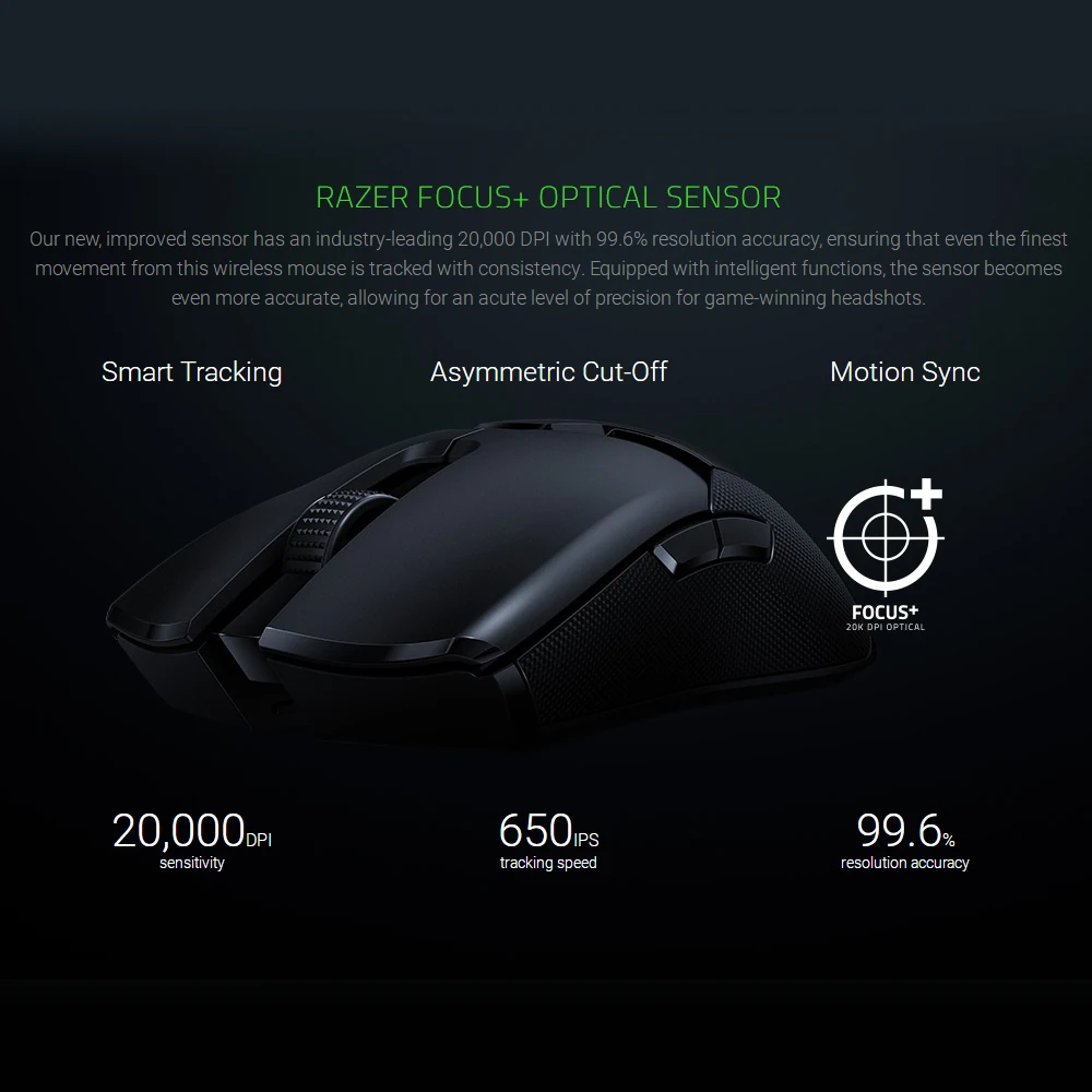 Razer Viper Ultimate разработан с надежной производительностью и высокой отзывчивостью. Разработанный, чтобы быть настоящим расширением геймера, поставляется с нашей самой передовой технологией и готов утонуть свои клыки в соревнованиях.