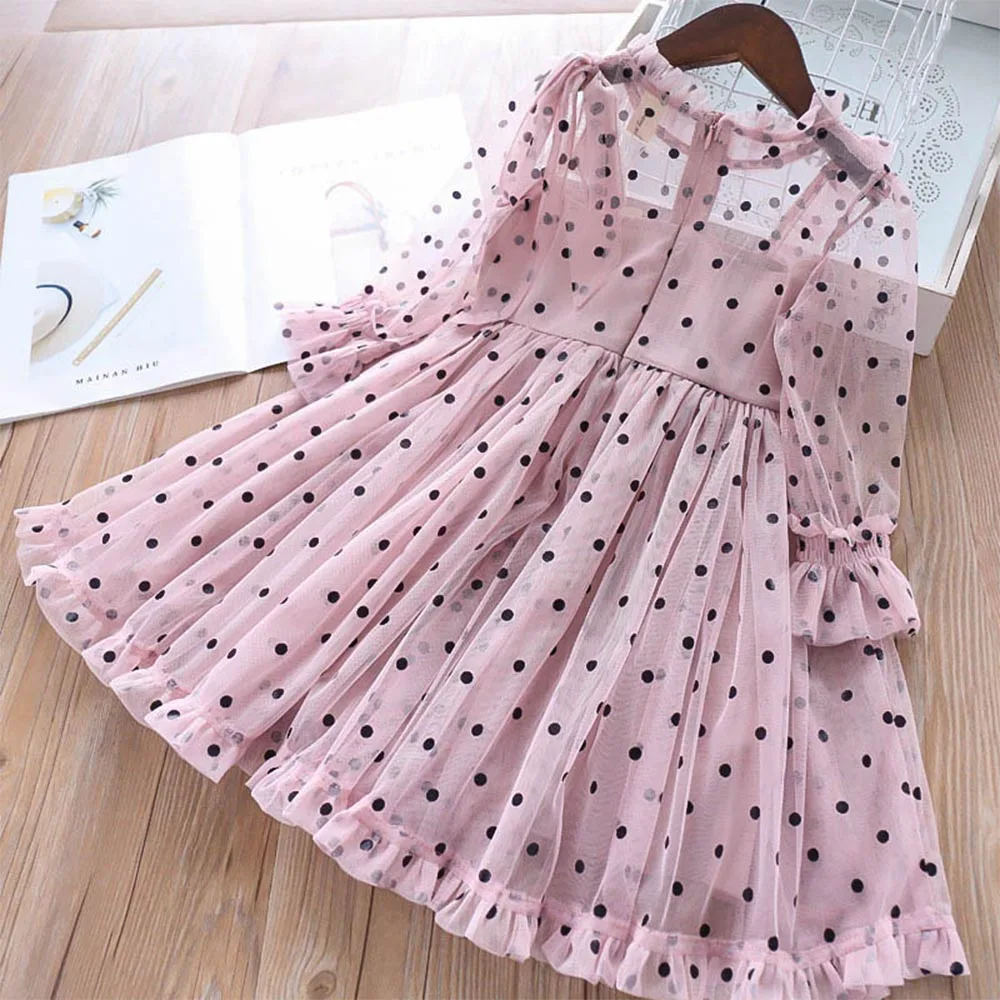 Amya Baby 2020 Новое поступление, детские летние платья, Сетчатое платье принцессы в горошек с расклешенными рукавами, одежда для маленьких девочек на день рождения