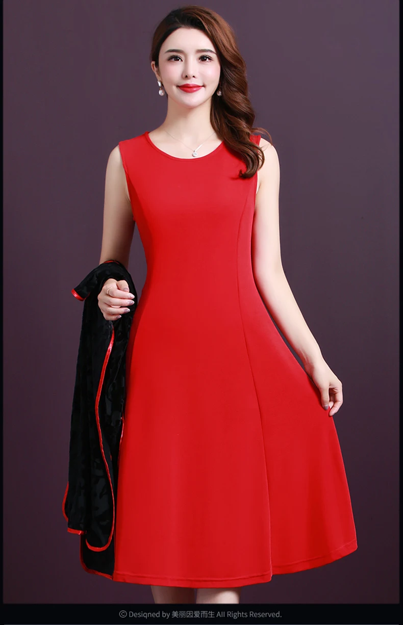 Новинка, весенний комплект из двух предметов, женское платье размера плюс, летнее платье без рукавов, Красное длинное платье, корейская мода, повседневные свободные платья для вечеринок, 5XL