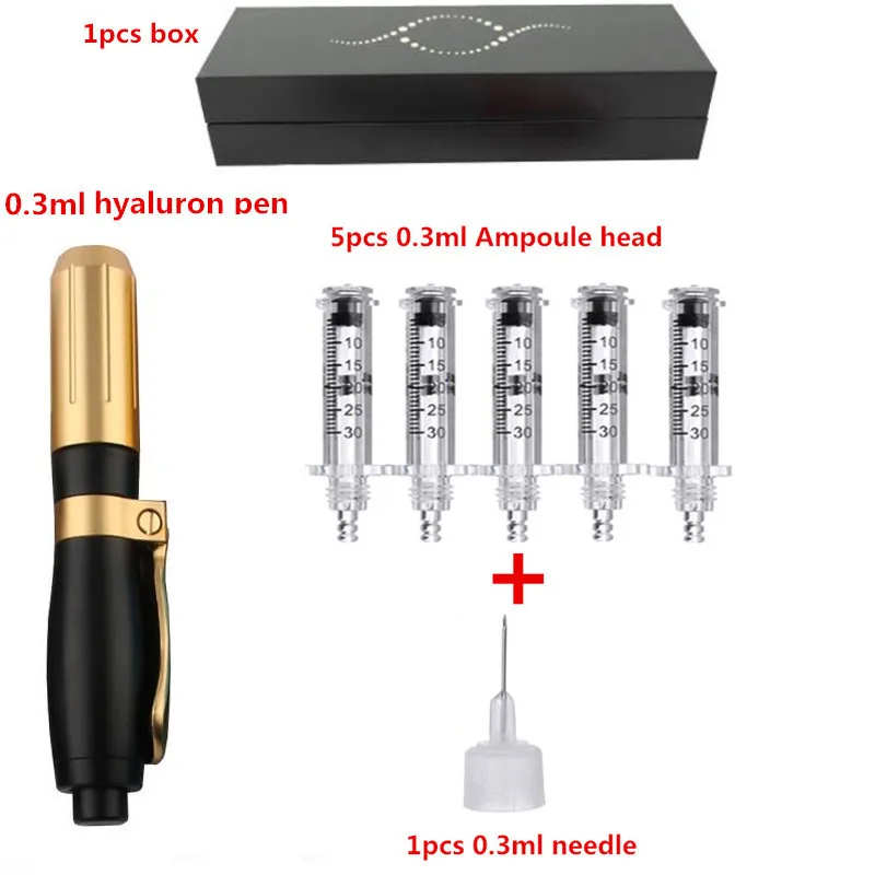 Тип изделия: гиалуроновая ручка Цвет: как на картинке Материал: сталь Количество одной инъекции: 0,05-0,3 мл (5-30IU) Время использования: 2000 раз Глубина впрыска: 6 мм Вес: 210 г Размер: 15 см/5.91in