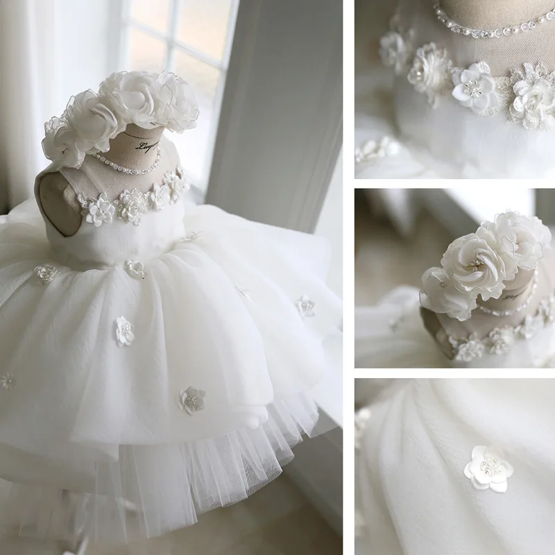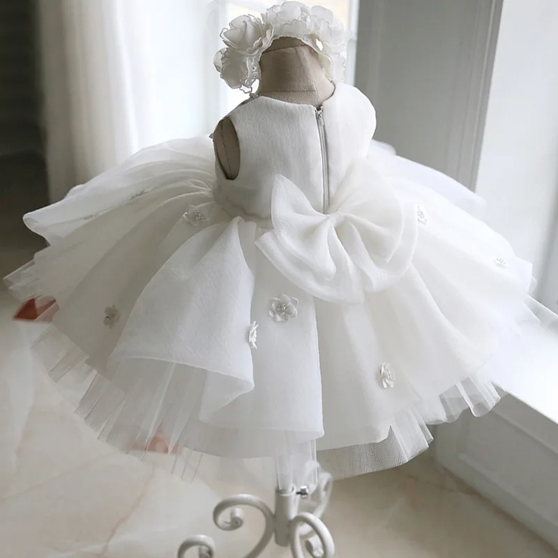 Flower Girl Dresses White Birthday Party Wedding Princess Dress Baby Toddler Kids Dress For Infant Girl Christening Ball Gown