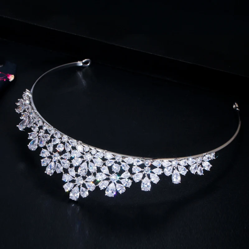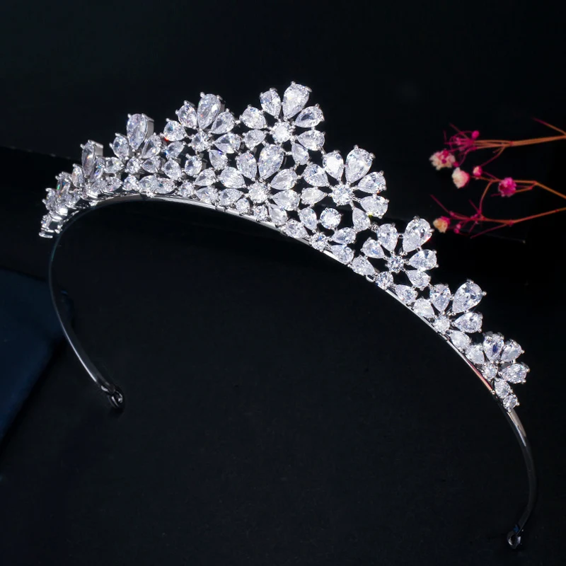 Пера блестящий цветок кубический цирконий кристалл элегантный головной убор принцессы Свадебная вечеринка Выпускной корона тиара ювелирные изделия для невесты HA016