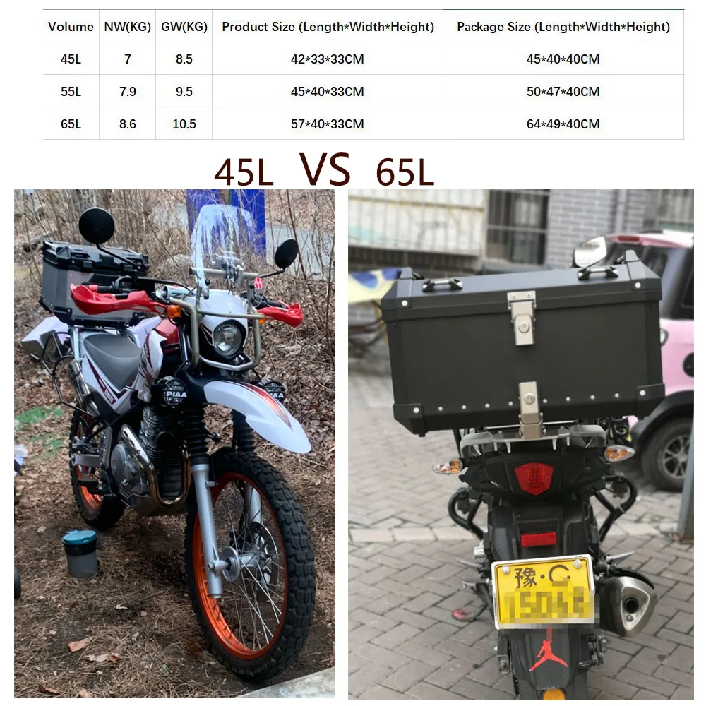 65L 55L 45L Универсальный мотоциклетный задний багажник багажный шлемЯщик для инструментовЗамок Набор инструментов для путешествий ЧехолС ключами съемныйВодонепроницаемый модифицированный мотор аксессуары Высокое качество7050Алюминий из алюминиевого сплава