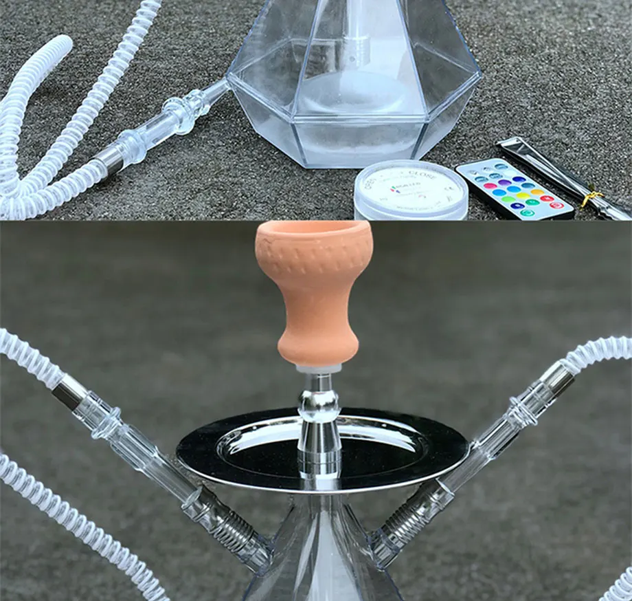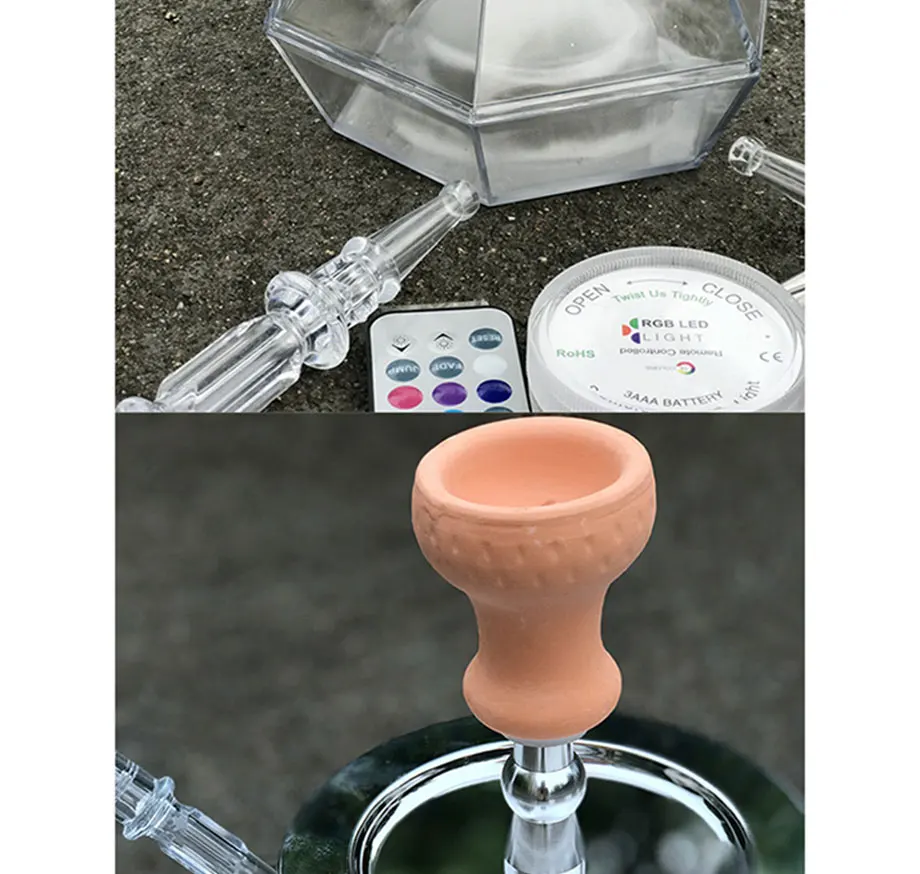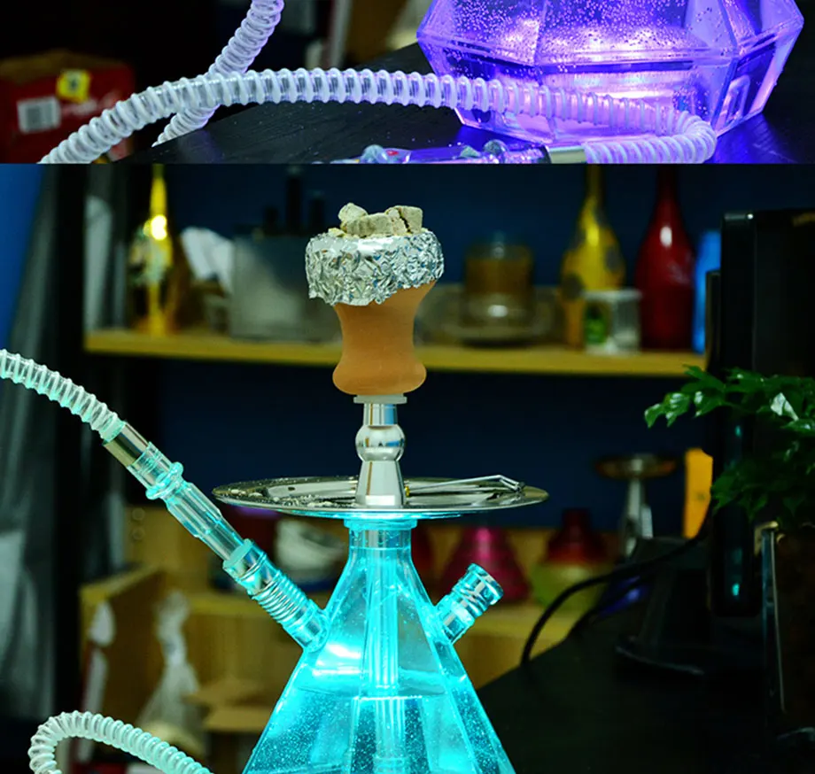 Новый прозрачный акриловый кальян с светодиодный подсветкой трубка для кальяна зажим металлический лоток латексный шланг Chicha кальян наргиле аксессуары подарок на день рождения