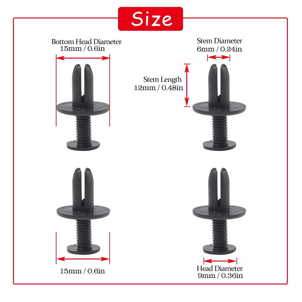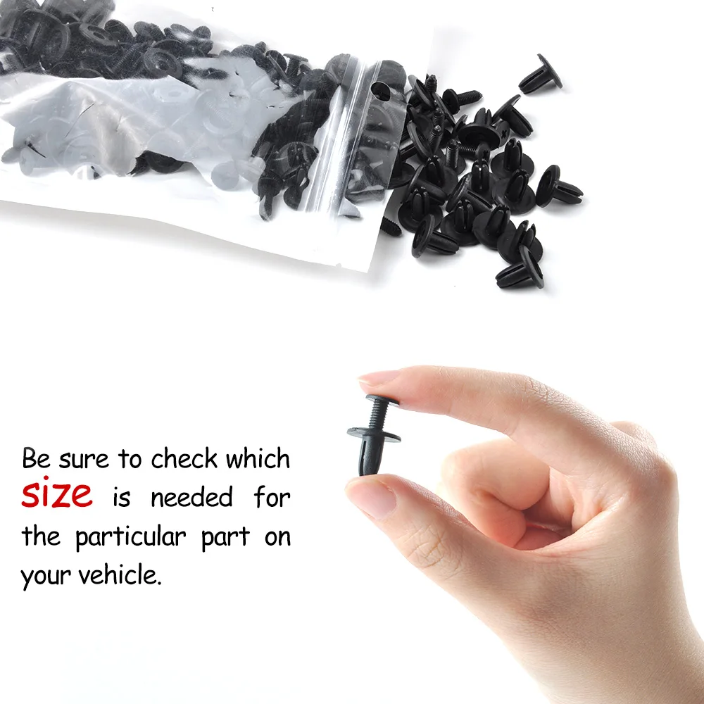 Посылка включает в себя: 100 шт. автомобильные пластмассовые зажимы Даже если в описании товара указано, что они подойдут вашему автомобилю, Измерьте диаметр пространства, в которое входит крепеж, прежде чем заказывать эти зажимы.