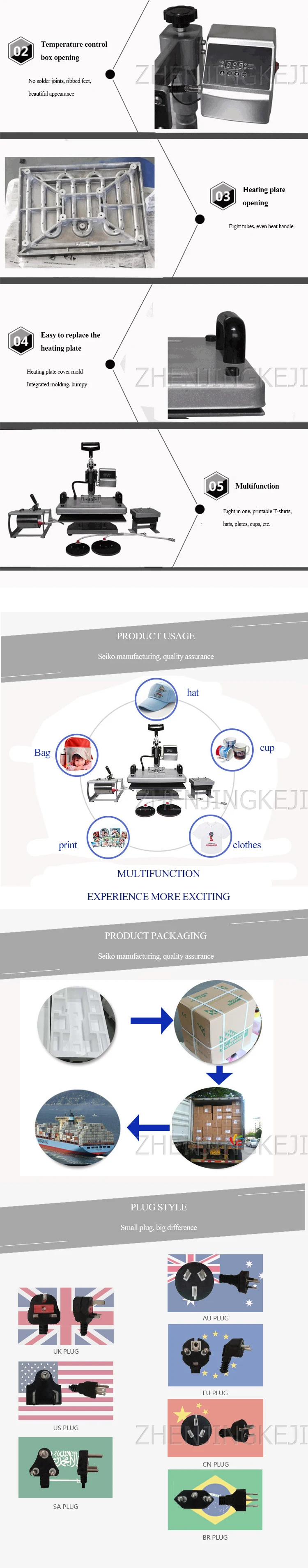Модель: HP8 IN1 Напряжение: 110/220 в Мощность: 1200/1400 Вт Размер нагревательной пластины: 29*38 см/38*38 см Размер упаковки: 62*58*55 см Вес брутто: 40 кг Применение: теплопередача Основная конфигурация: плоская машина для теплового Пресса/коврик для чашки/колпачок коврик/коврик для плиты Вместимость: футболка/кружка/белая тарелка/шляпа и т. Д.