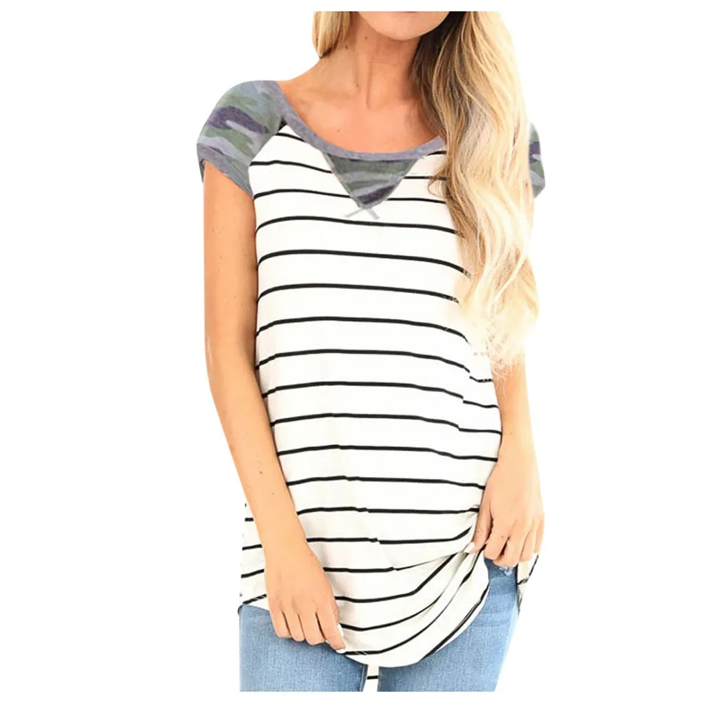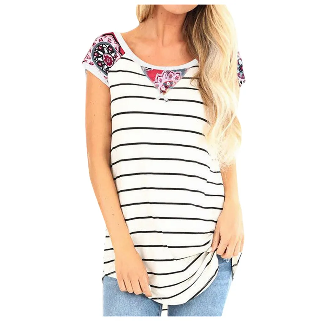 Женская Повседневная модная футболка с принтом и круглым вырезом, блузка с коротким рукавом, топы