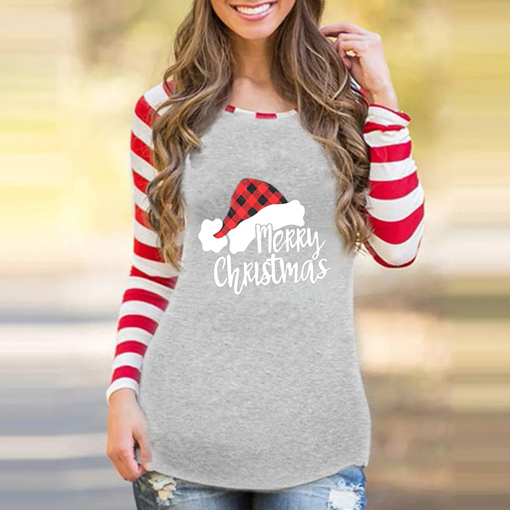 Женская Повседневная Рождественская клетчатая рубашка реглан с длинным рукавом, блузка, топы
