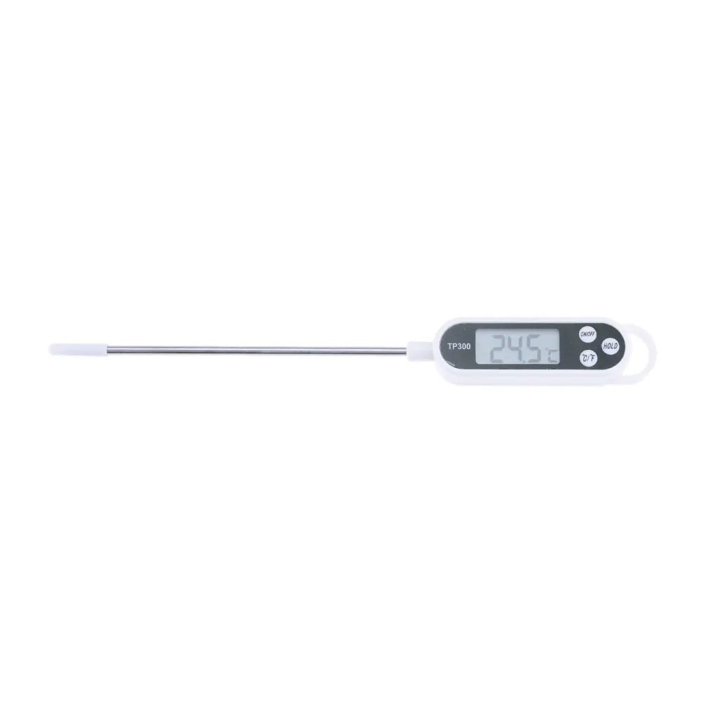 Конструкция ручки, зонд из нержавеющей стали Широкий диапазон измерений: подходит для температуры жидкой воды, пасты, хлеба, мяса, фруктов, температуры масла, сиропа и т. д. Функция удержания данных: с кнопками переключения по Цельсию, по Фаренгейту Измерение температуры памяти Автоматическое отключение в течение 10 минут Особенности: Диапазон измерения температуры: -50 ° c3∽ + 300 ° C (-58 ° f3∽ + 572 ° F) Разрешение: 0,1 ℃ Точность: ± 1 ℃ (-20 ℃ 1,0 + 80 ℃) ± 5 ℃ Частота измерения: 1 секунда, 10 секунд, режим сна, автоматически выбран Источник питания: DC1.5V AG13 Размер дисплея: 20 × 35 мм Общий размер: 240*15 мм Длина зонда: 150 мм