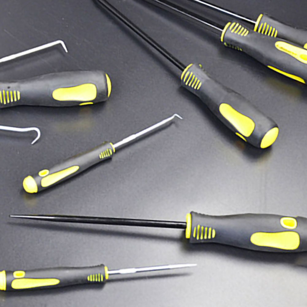* 1. Изготовлен из высококачественной легированной стали с термообработкой, высокой твердостью, износостойкостью и защитой от ржавчины. 9 штук скребок для прокладки палочки крюк набор, в том числе 4 Короткие выбирает, 4 длинные пики и 1 скребок для прокладки.