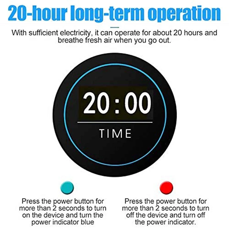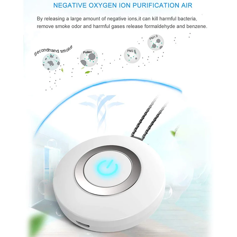 Портативный и прочный: Этот мини-очиститель воздуха прост и компактен. Его можно повесить на шею, повесить в машине, очень стильно, и его можно использовать для создания чистой, хорошей воздушной зоны в путешествиях, общественных местах или других местах с плохим качеством воздуха. Пусть свежий воздух всегда будет сопровождать вас.