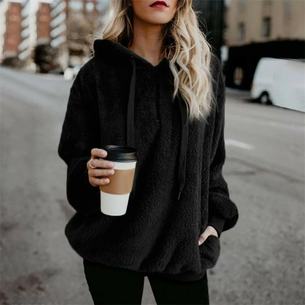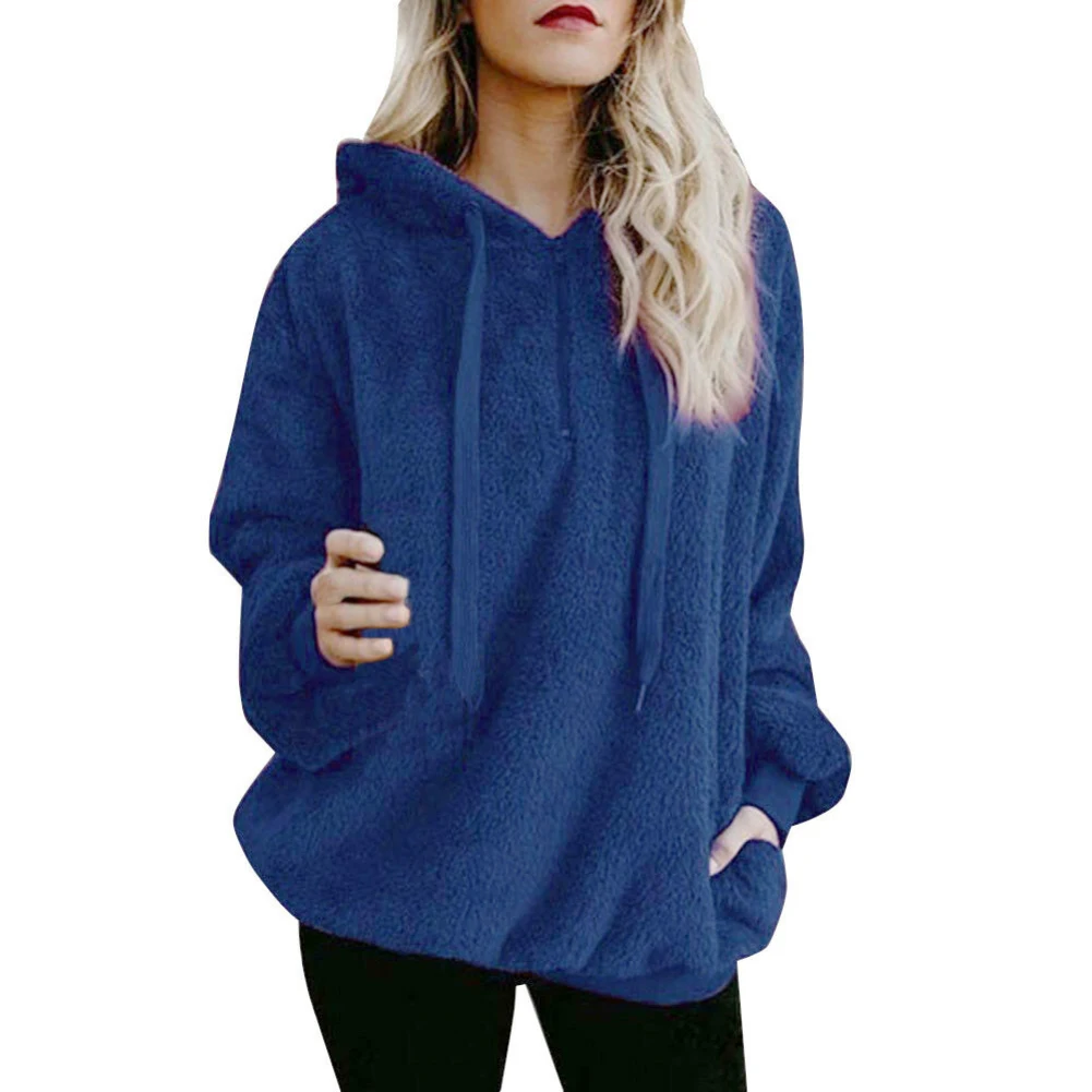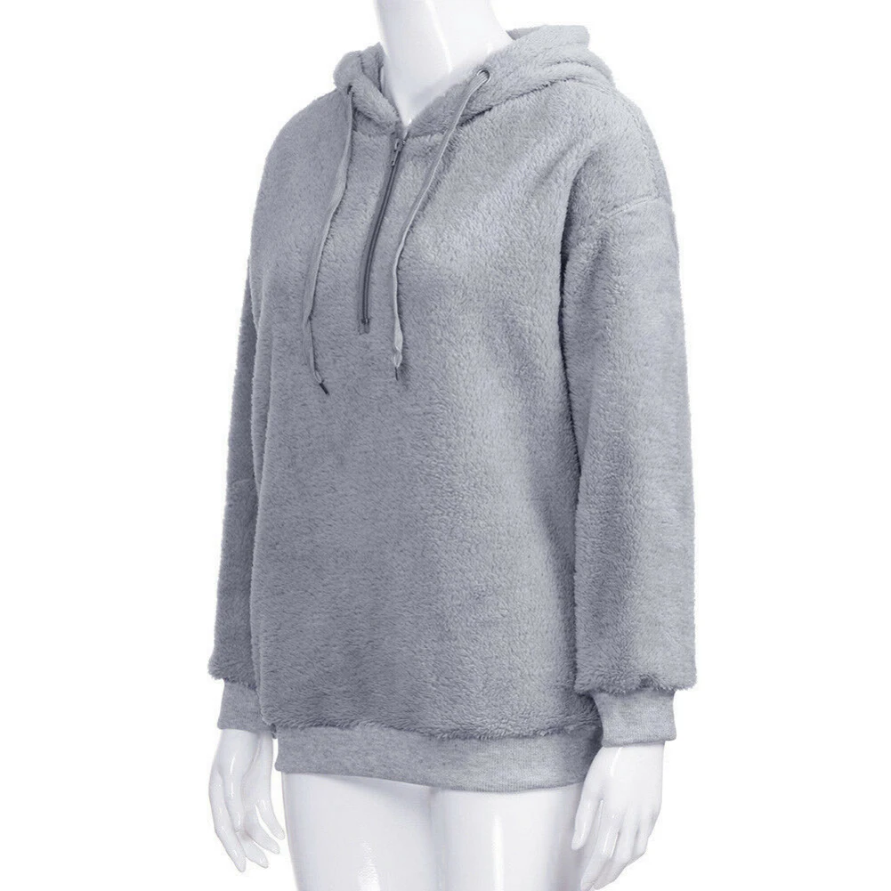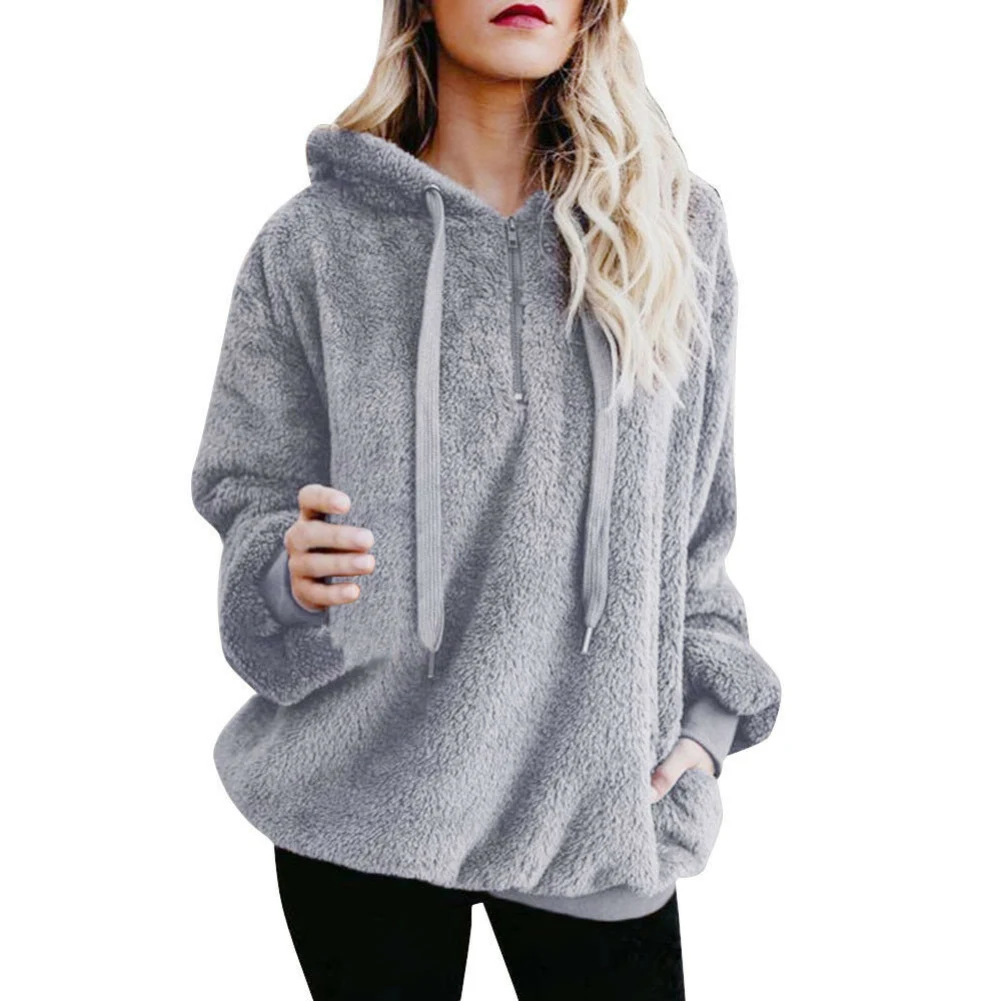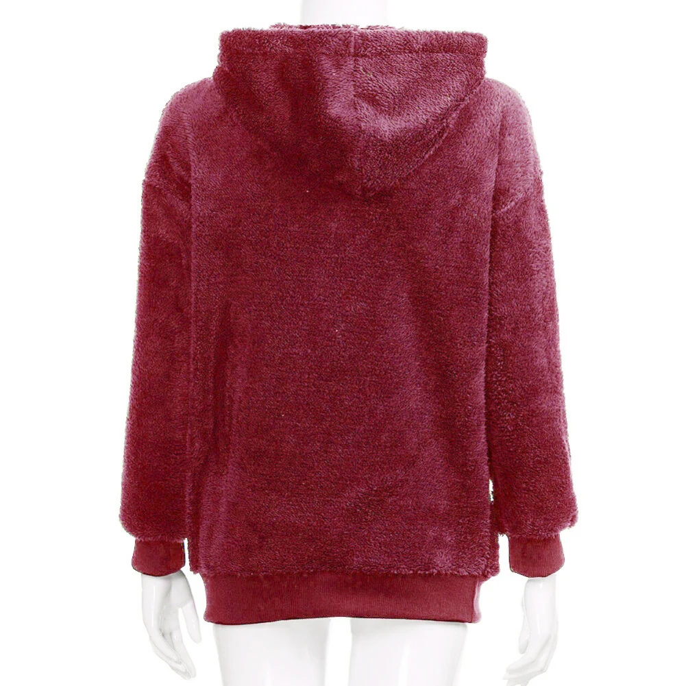 Женская Теплая Флисовая пушистая толстовка на молнии с капюшоном, зимний джемпер