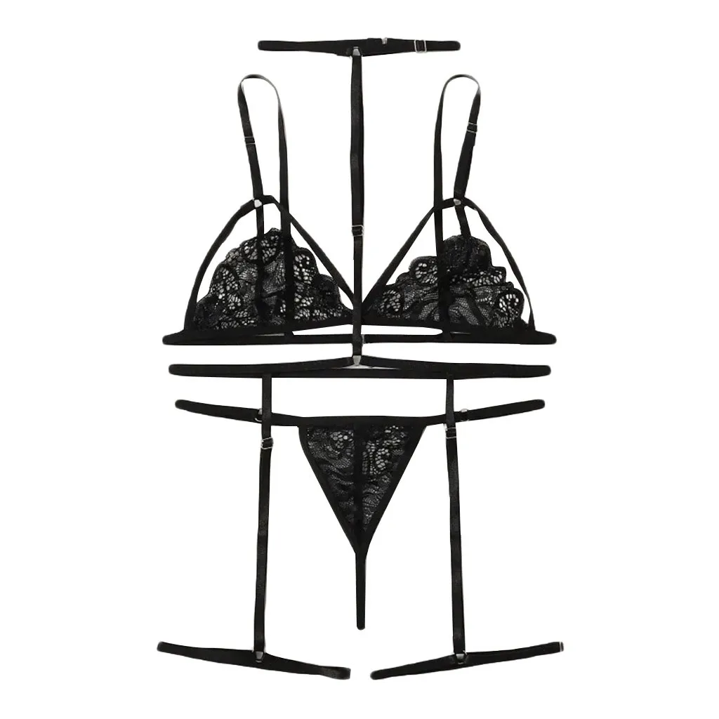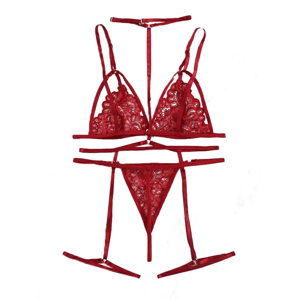 Модный женский бюстгальтер с v-образным вырезом + стринги + подвязка, комплект нижнего белья, S-2XL