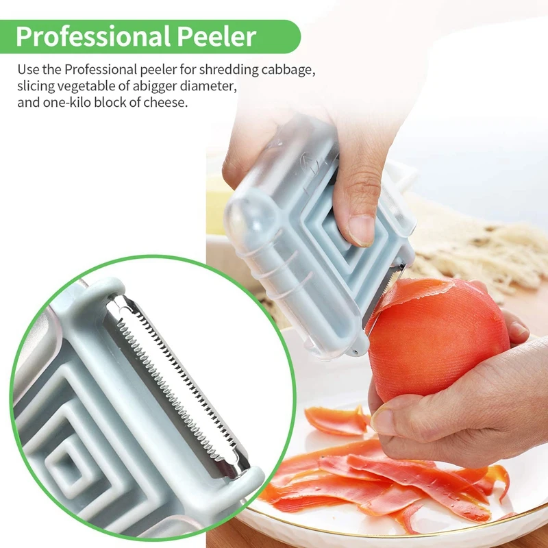 Многофункциональная Овощечистка может использоваться для пилинга и измельчения картофеля, моркови, сквоша и т. Д.; Острые лезвия позволяют использовать его более простым в использовании и включает в себя прозрачную откидную защитную крышку. Защищает пальцы от случайных травм