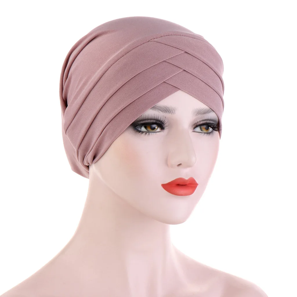 Новый лоб крест тюрбан Кепка мусульманский головной платок сплошной цвет головная повязка женские внутренние хиджабы химиотерапия шляпа модные аксессуары для волос