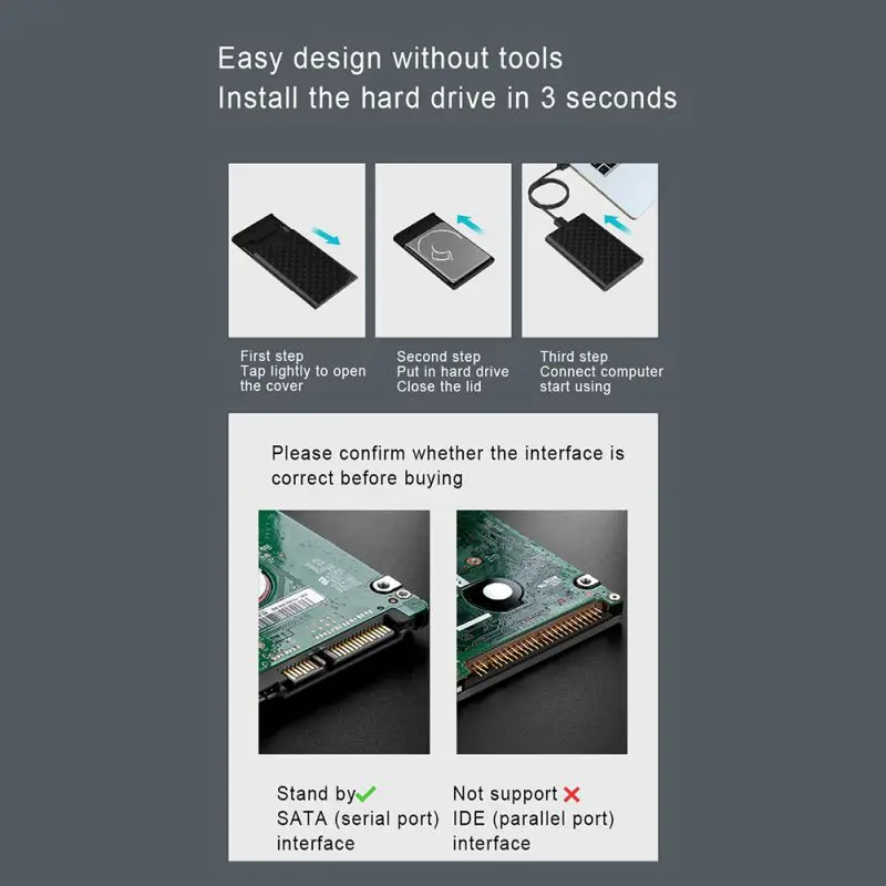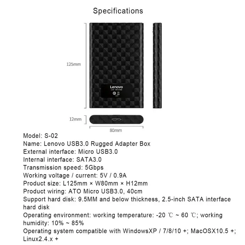 Lenovo S-02 2,5-дюймовый Портативный HDD чехол для компьютеров, ноутбуков, настольных компьютеров-черный 46