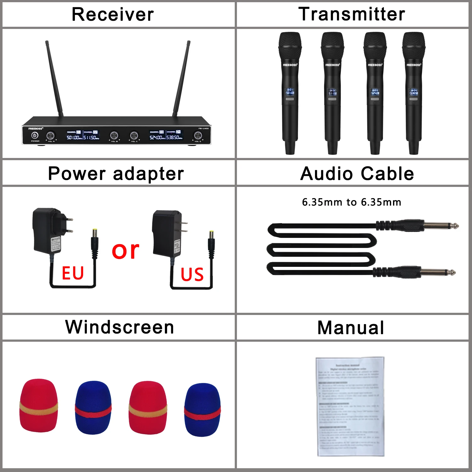 FREEBOSS FB-U400 UHF фиксированная частота караоке беспроводной микрофон профессиональный4 беспроводной ручной микрофон 4-канальный беспроводной