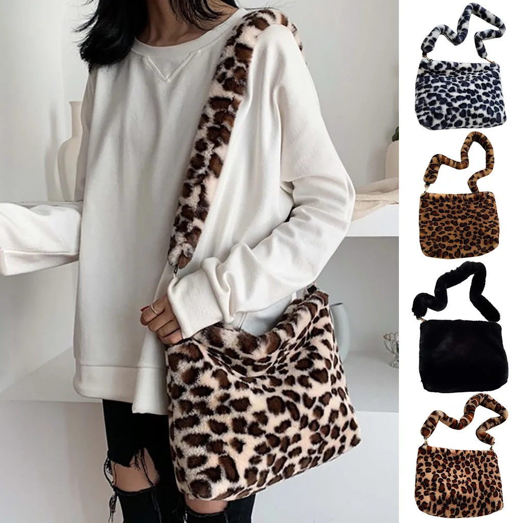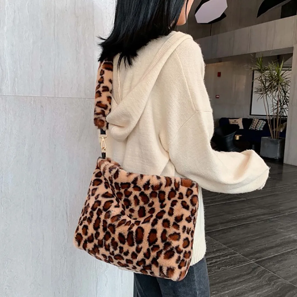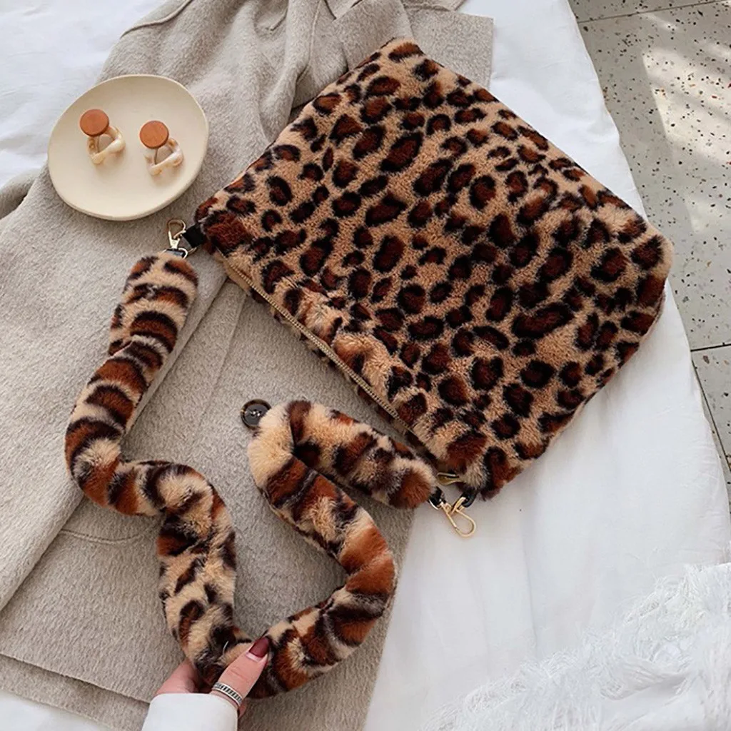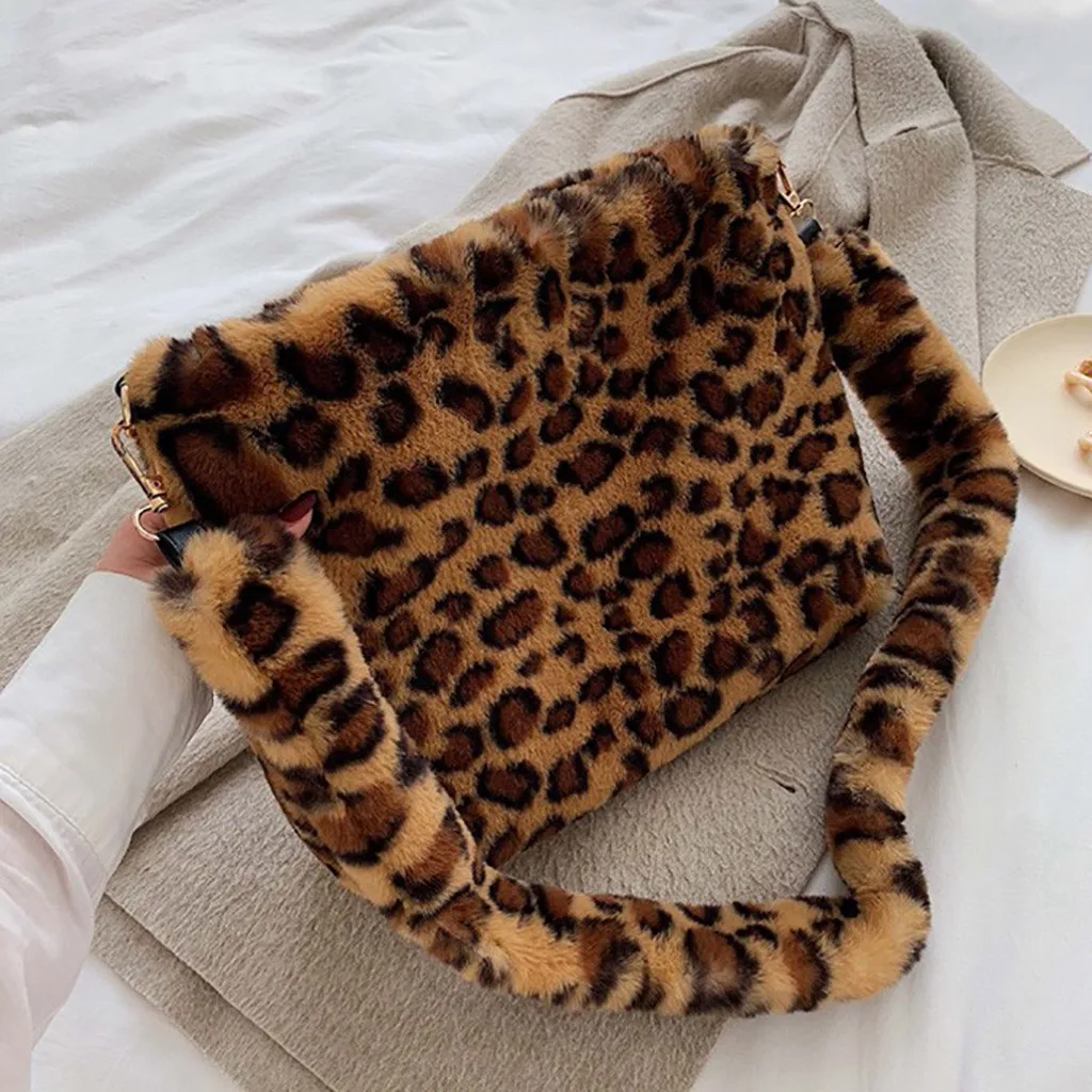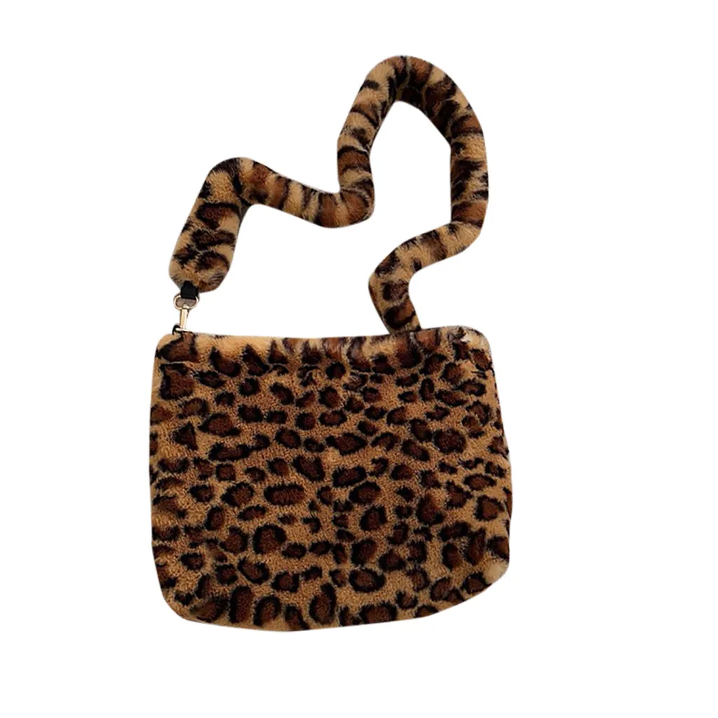 Женская леопардовая винтажная плюшевая сумка, осенняя и зимняя модная сумка через плечо