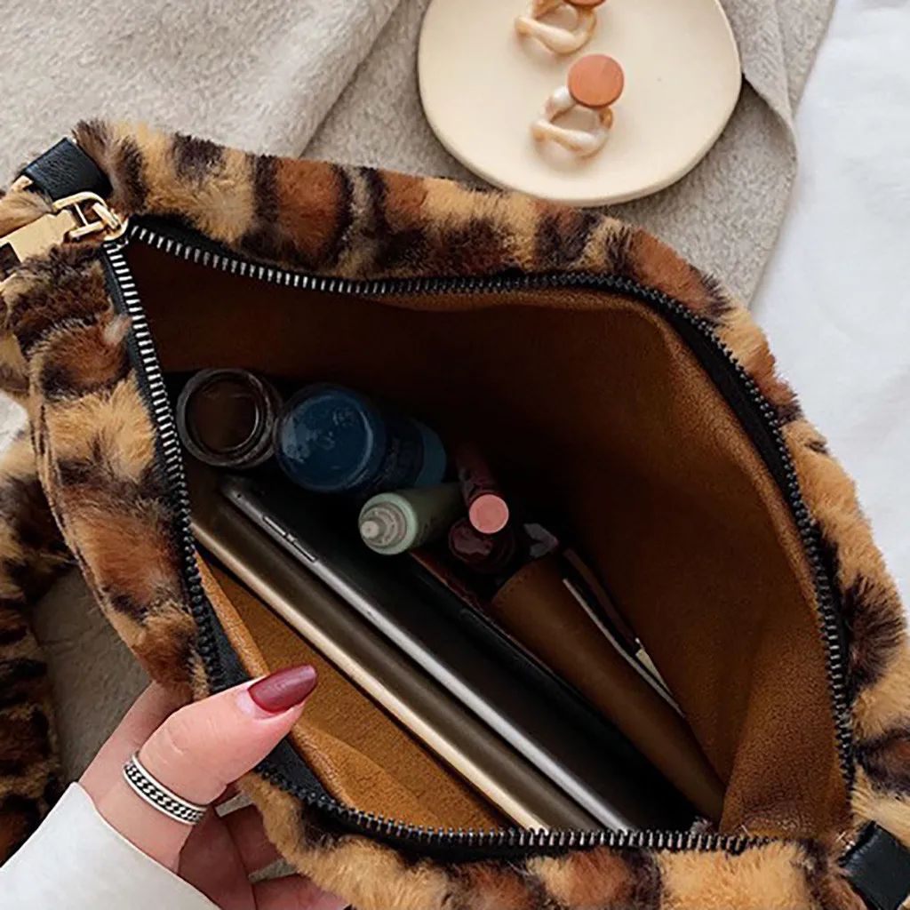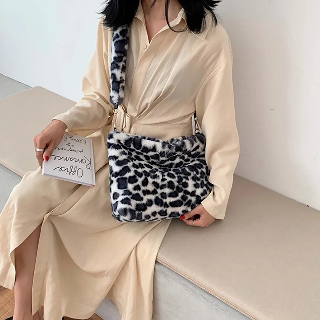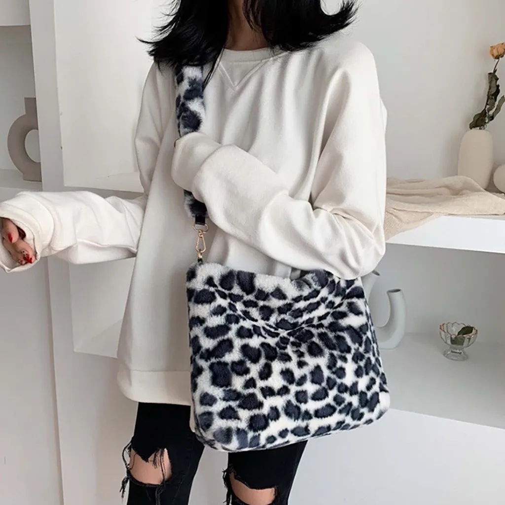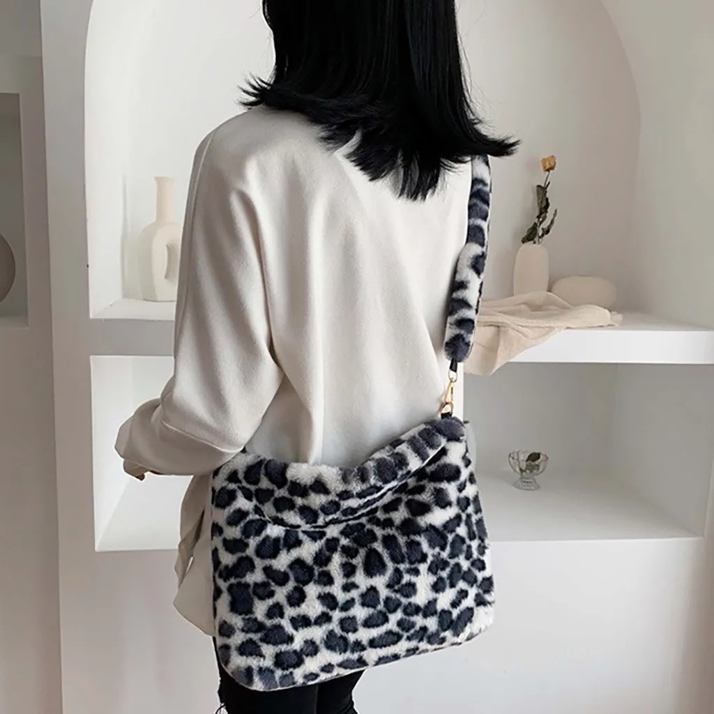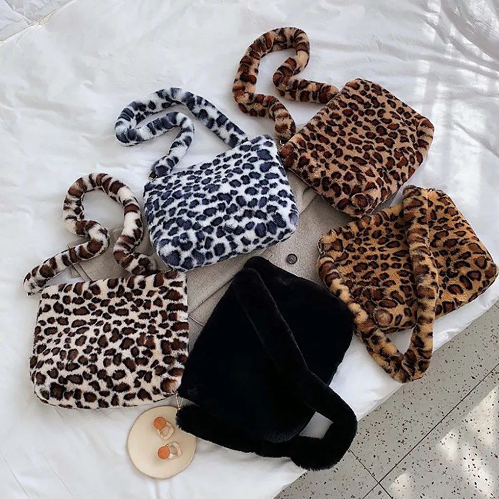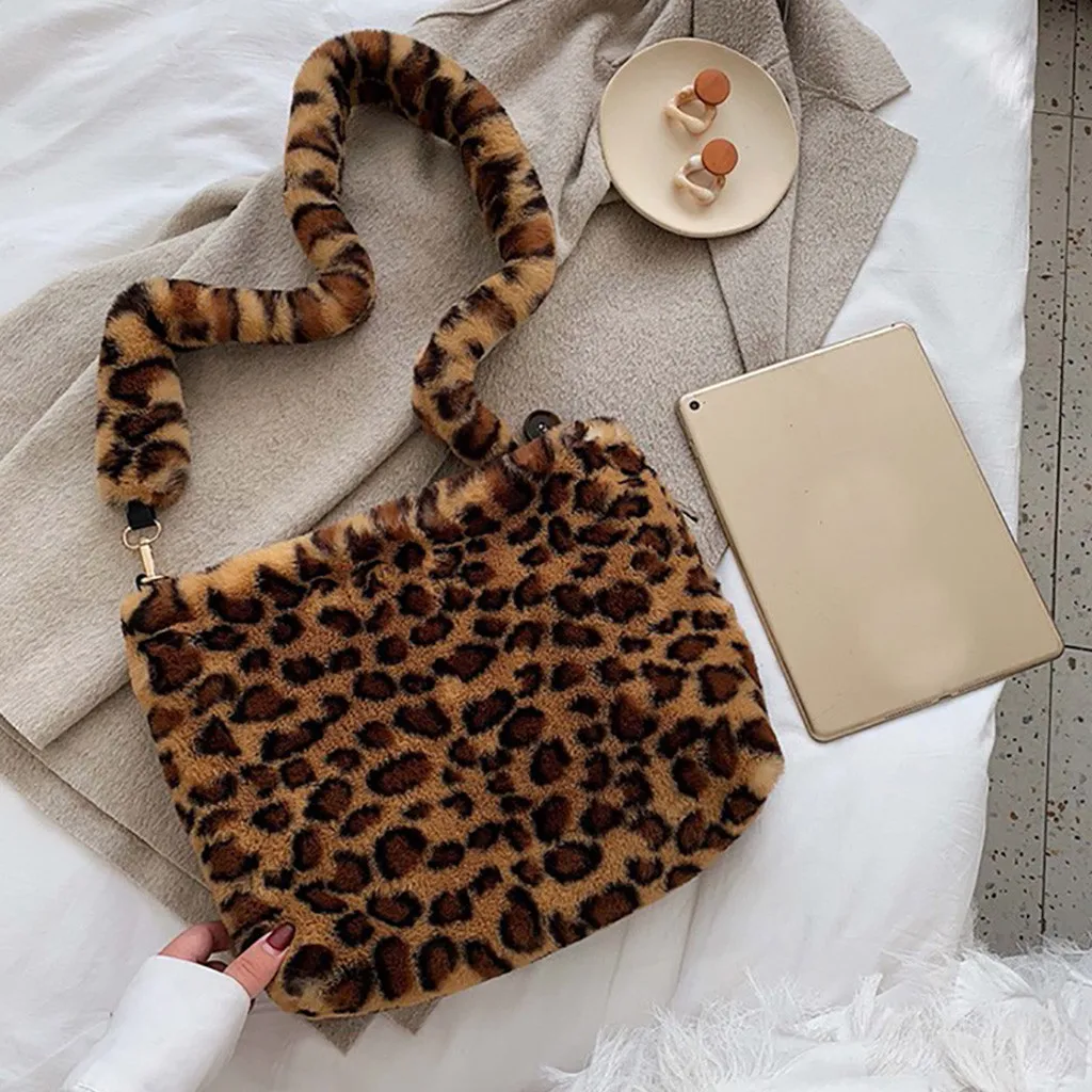 Женская леопардовая винтажная плюшевая сумка, осенняя и зимняя модная сумка через плечо