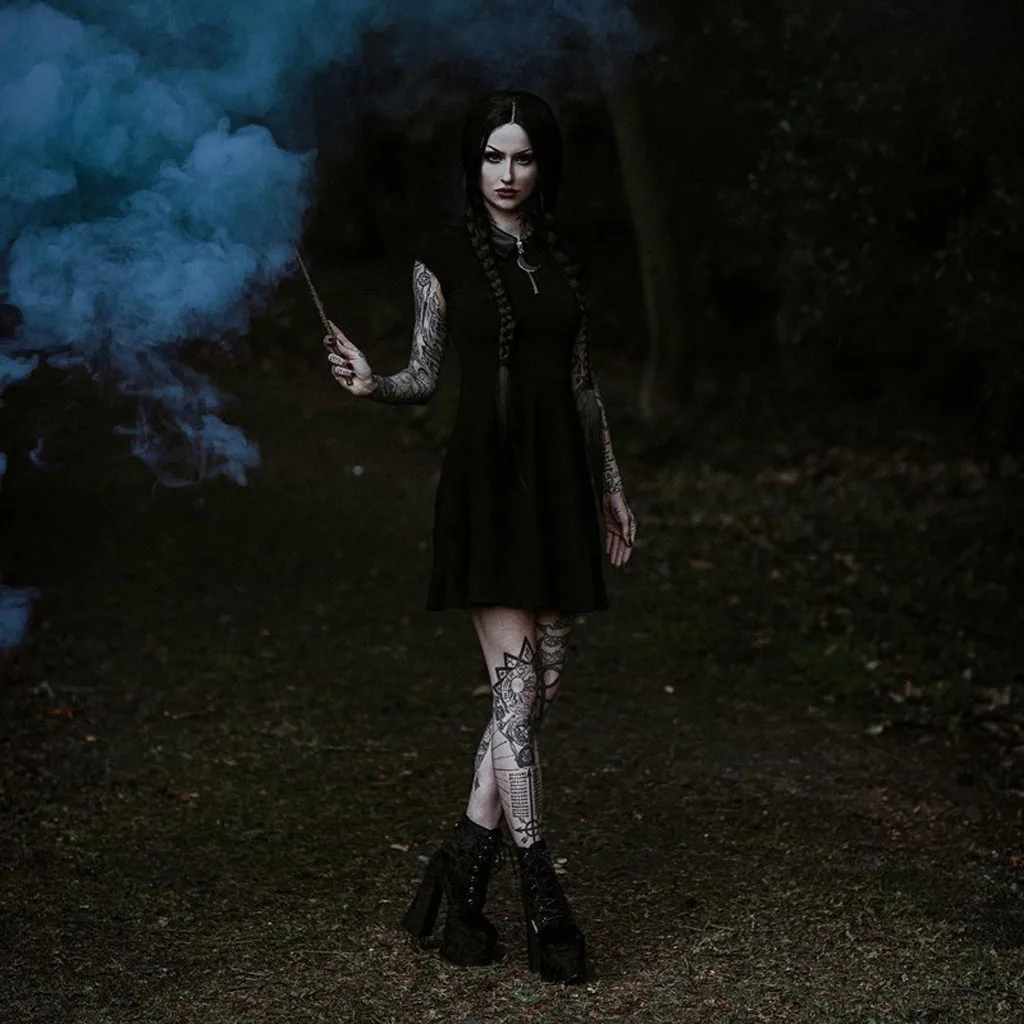 Женское модное платье-миди с оборками и открытыми плечами в готическом стиле