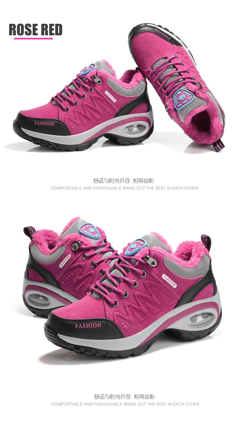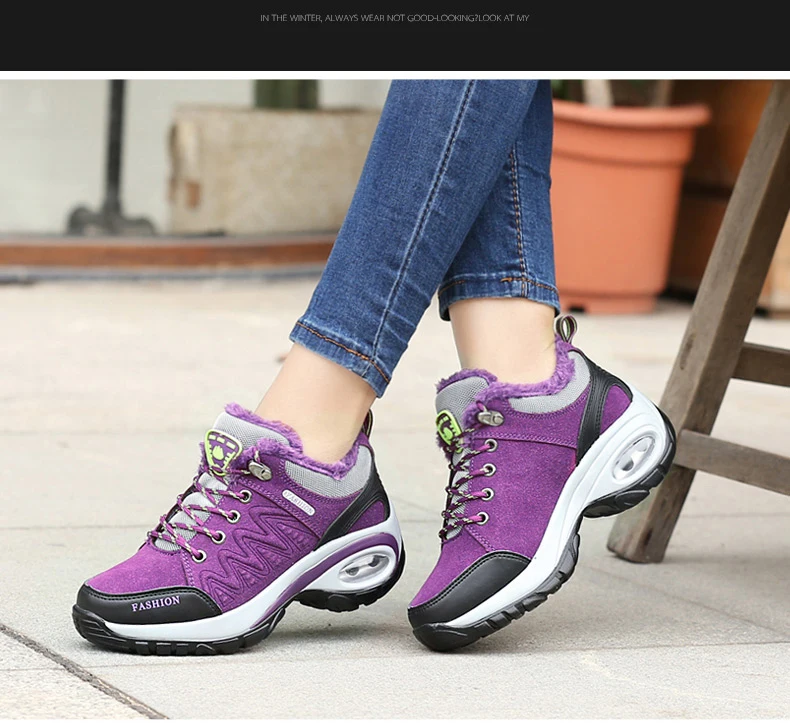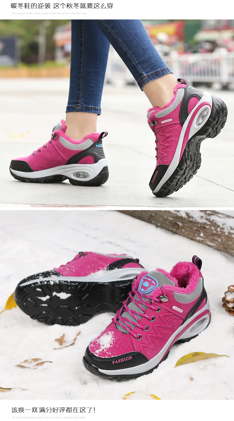 Женские зимние ботинки для пешего туризма; Уличные теплые Нескользящие женские ботинки с воздушной подушкой; Нескользящие зимние ботинки; Спортивная обувь для ходьбы для женщин
